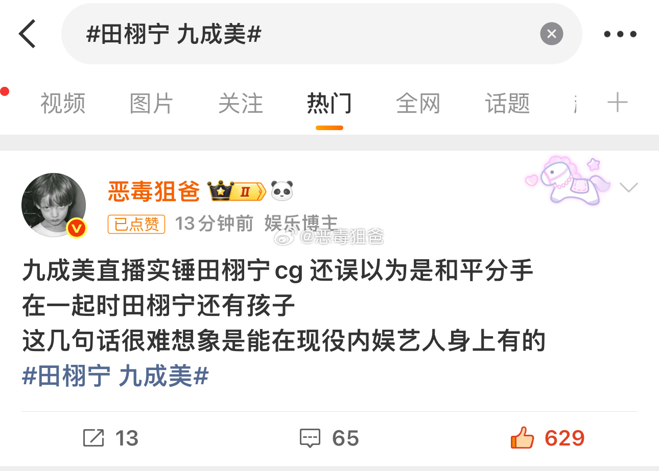 九成美直播实锤田栩宁cg 还误以为是和平分手在一起时田栩宁还有孩子这几句话很难想