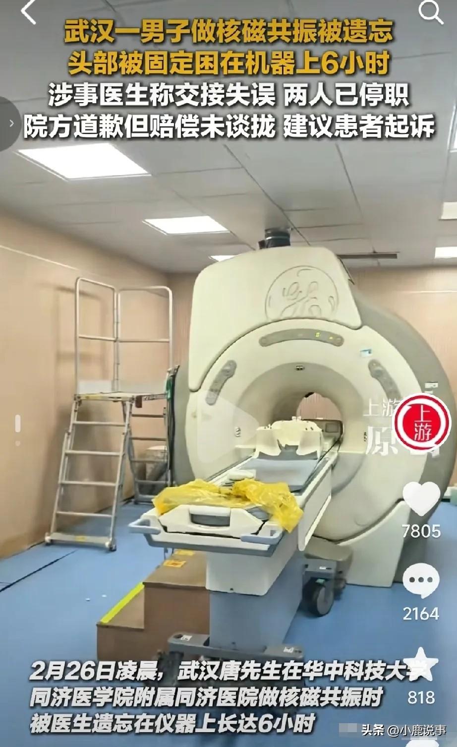 太揪心了。 唐先生被忘在核磁床上。 一躺就是整整六个小时。 密闭空间。 动弹不得。 喊人也没人应。 换谁都会崩溃。 专业律师给出说法。 赔偿大概率在几千到一两万。 因为核磁设备没有辐射。 主要补偿的是精神伤害。 可精神上的折磨。 难道就不算伤害吗? 每一分每一秒的恐惧。 都是真真切切的煎熬。 医院的疏忽。 不该让病人独自承受。 细节再小的失误。 落在一个人身上。 就是扛不住的委屈。 只愿以后。 再也没有人遭遇这样的事。