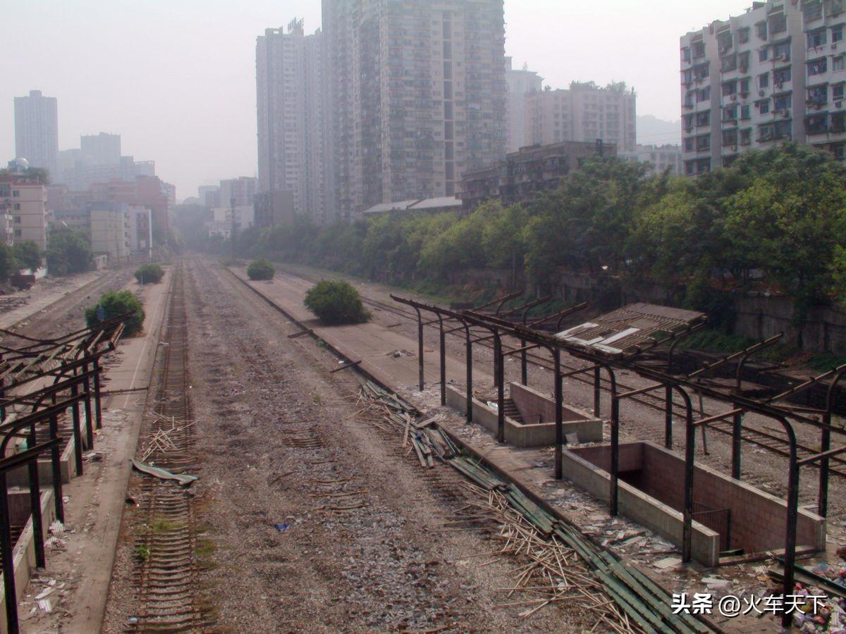 这是2011年9月,沙坪坝火车站拆除轨道的情形,该站已经在那年5月停用,为配合成渝高铁建设,沙坪坝站拆除旧站,之后重建高铁站,新的高铁站已于2018年1月投用。 过去天星桥到陈家湾的公路跨过沙坪坝火车站,有火车经过沙坪坝站并停靠的时候,桥上就有一些行人停下脚步看看,这几张图就是在天陈路跨线桥上拍的,车站改造重建的时候,天陈路跨线桥也拆了,改为下穿道从高铁站下方穿过。