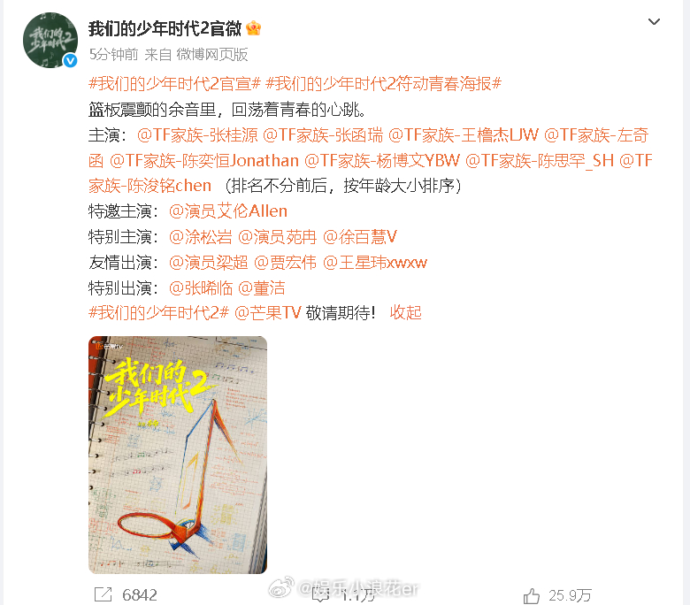 我们的少年时代2正式官宣 主演:(排名不分前后,按年龄大小排序),你期待谁?