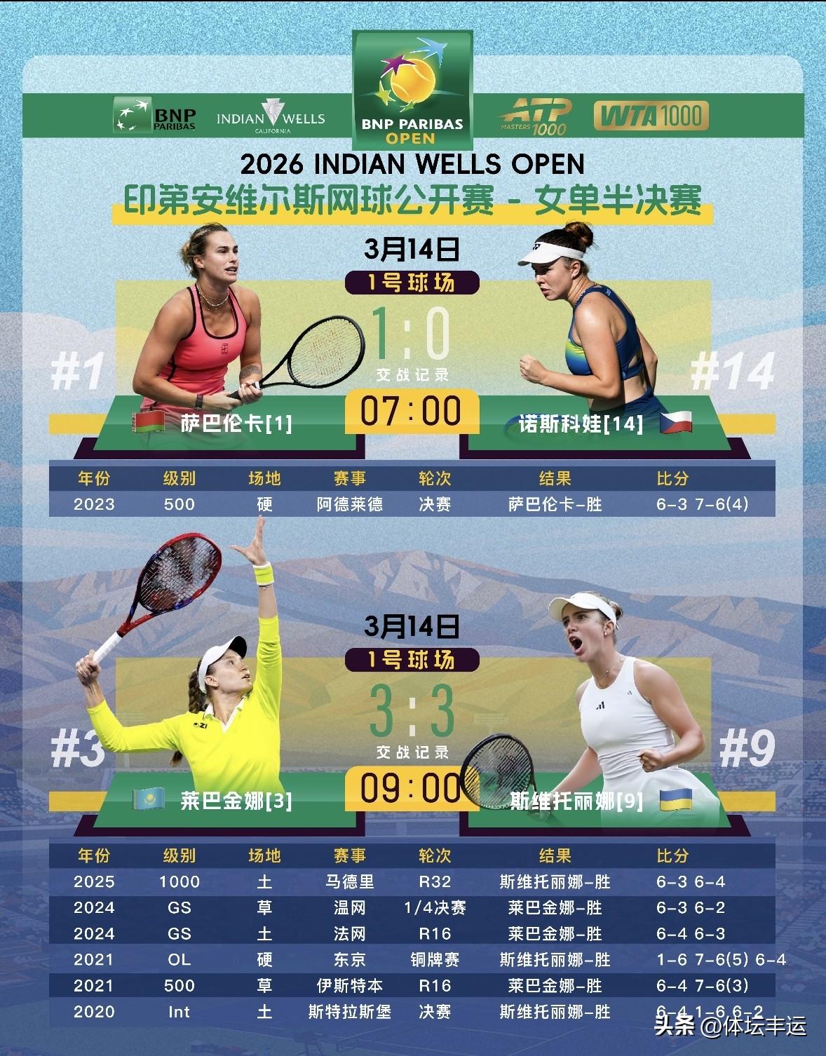 🎉冰美人战胜小白菜锁定印第安维尔斯女单决赛席位🔥🔥 刚结束的女单半决赛第二场太精彩了!3号种子哈萨克斯坦莱巴金娜以7 - 5、6 - 4的比分战胜9号种子乌克兰斯维托丽娜,成功锁定WTA1000印第安维尔斯女单决赛席位。 此前在1/4决赛,莱巴金娜就以6 - 1、7 - 6(4)击败佩古拉强势晋级四强,下周她的世界排名将升至第二。这次和斯维托丽娜的对决,莱巴金娜状态爆棚,完全压制住对手。斯维托丽娜虽淘汰了斯瓦泰克闯入四强,但在莱巴金娜面前还是稍逊一筹。 真期待决赛,看看莱巴金娜和萨巴伦卡的精彩对决! WTA单打排名 WTA单打排名