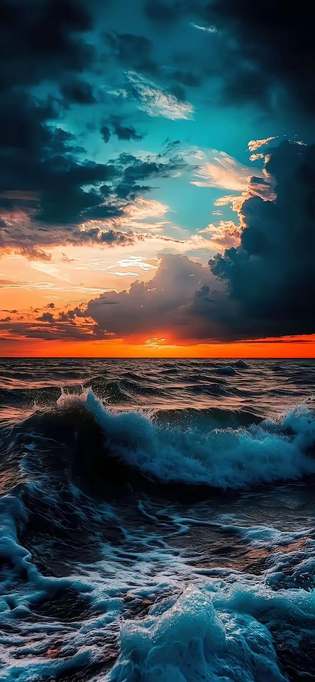 手机壁纸~落日熔金,海浪翻涌,蓝白交织,流光溢彩。大海的每一种模样,都藏着治愈与浪漫,奔赴山海,不负热爱