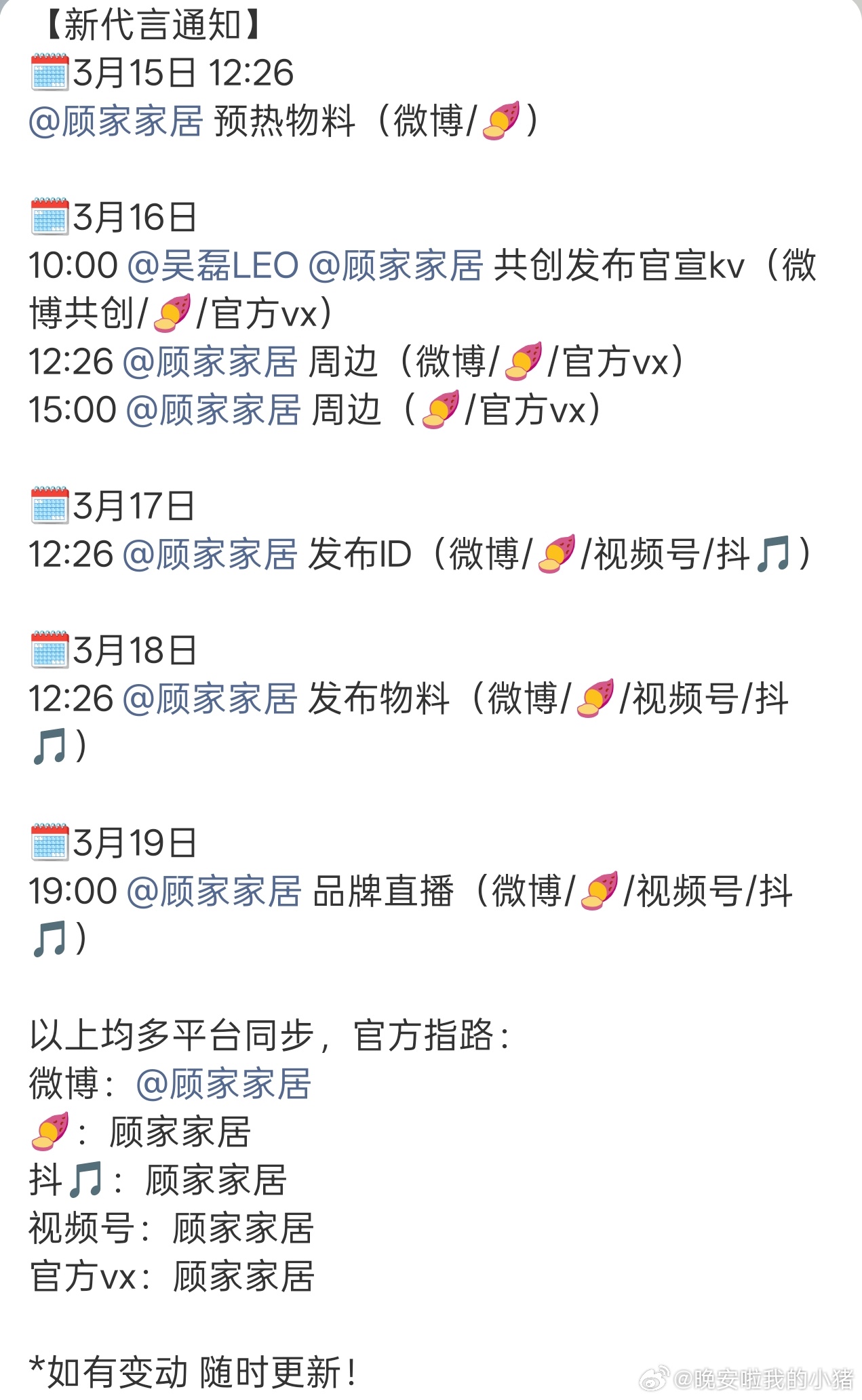 吴磊新增代言顾家家居,都是高质量国民品牌的