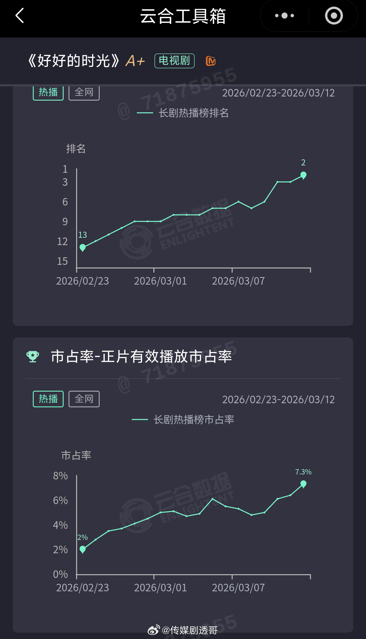 🥭好好的时光从开播的13名,一直涨到了第二,如果有很好宣发,这个成绩还会更好