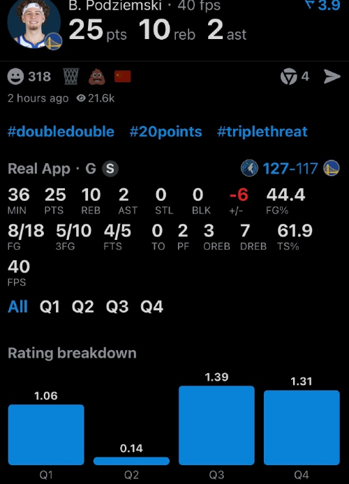 森林狼127-117击败勇士,终结了自己的三连败,同时送给勇士四连败。爱德华兹42分8板5助攻,波杰25分10板2助攻。