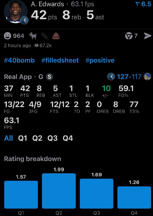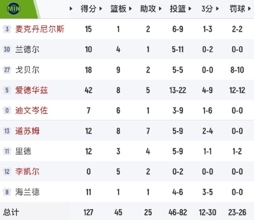 森林狼127-117击败勇士,终结了自己的三连败,同时送给勇士四连败。爱德华兹4