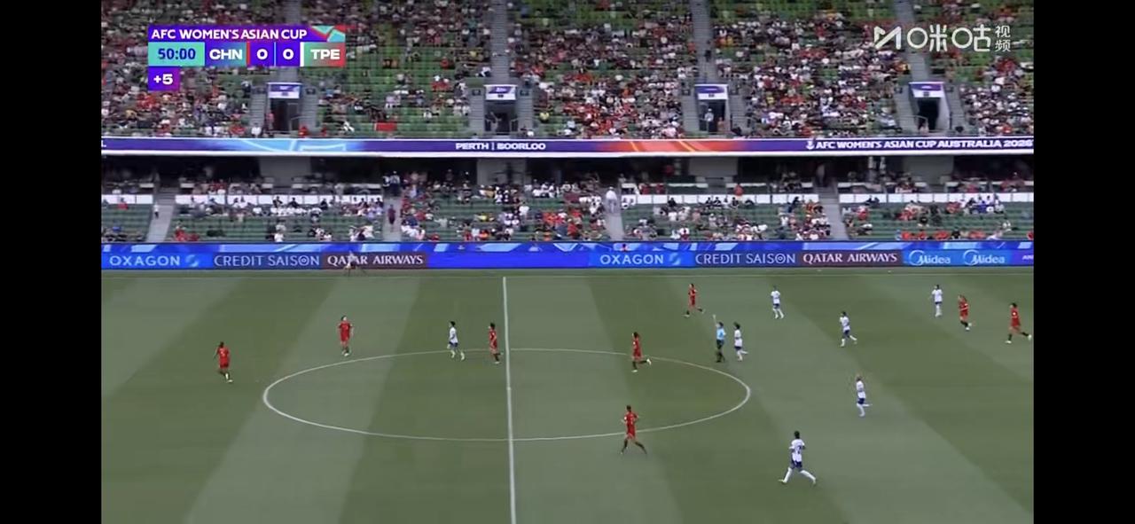 中国女足暂时与台北女足打平 双方在上半场都没有得分 在踢到39分钟的时候,王霜传给邵子钦,然后邵子钦看准边路的李梦雯,而李梦雯稍微往前推进了一下,就很默契的明白王霜的跑位,于是精准传中,王霜头球破门,可惜最终被VAR判定为越位 但是在查看VAR的时候,镜头一直切换王霜传球前拿球的瞬间,让我们疑似手球,在比赛继续进行了一分多钟后,镜头才给出是越位被吹的 就看下半场中国女足能否延续上半场的态势,顺利拿下比赛,实现直接挺进世界杯的目标!