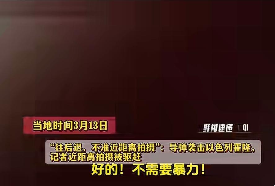 这就是大众很难看到以色列被袭击的原因,难怪伊朗热火朝天打了40多轮,我们也感受不到以色列遭到一丁点伤害。 就在3月13日,以色列境内一处目标地被导弹精准命中,现场火光冲天,多名记者赶赴现场。结果镜头刚对准火海,就被以方警察跑来极力阻挡、野蛮驱赶。 这些袭击场面不是没发生过,也不是没有记者,而是人家压根不让你拍,拼命阻止你拍。镜头刚对准大火,人先被推走,设备被挡住。一边是熊熊燃烧的现场,一边是严防死守的封锁,把所有的真相通通拦在了外面。 比起大火,更让人难以理解的,是连灾难现场都要管控镜头,连真实发生的事情都要捂住眼睛。清场、删素材、吊销记者证、高额罚款、甚至会被拘捕,一套组合拳下来,西方标榜的新闻自由已沦为摆设。 我们看不到的,不是没有发生过,只是一场精心设计的“看不见”。他们拼命想捂住镜头,不是怕泄密,说白了,只是怕自己的“无敌神话”被戳破,民心动摇。 火光能被挡住,但真相可挡不住。无论再怎么信息封锁,也遮不住发动战争所带来的真实代价……