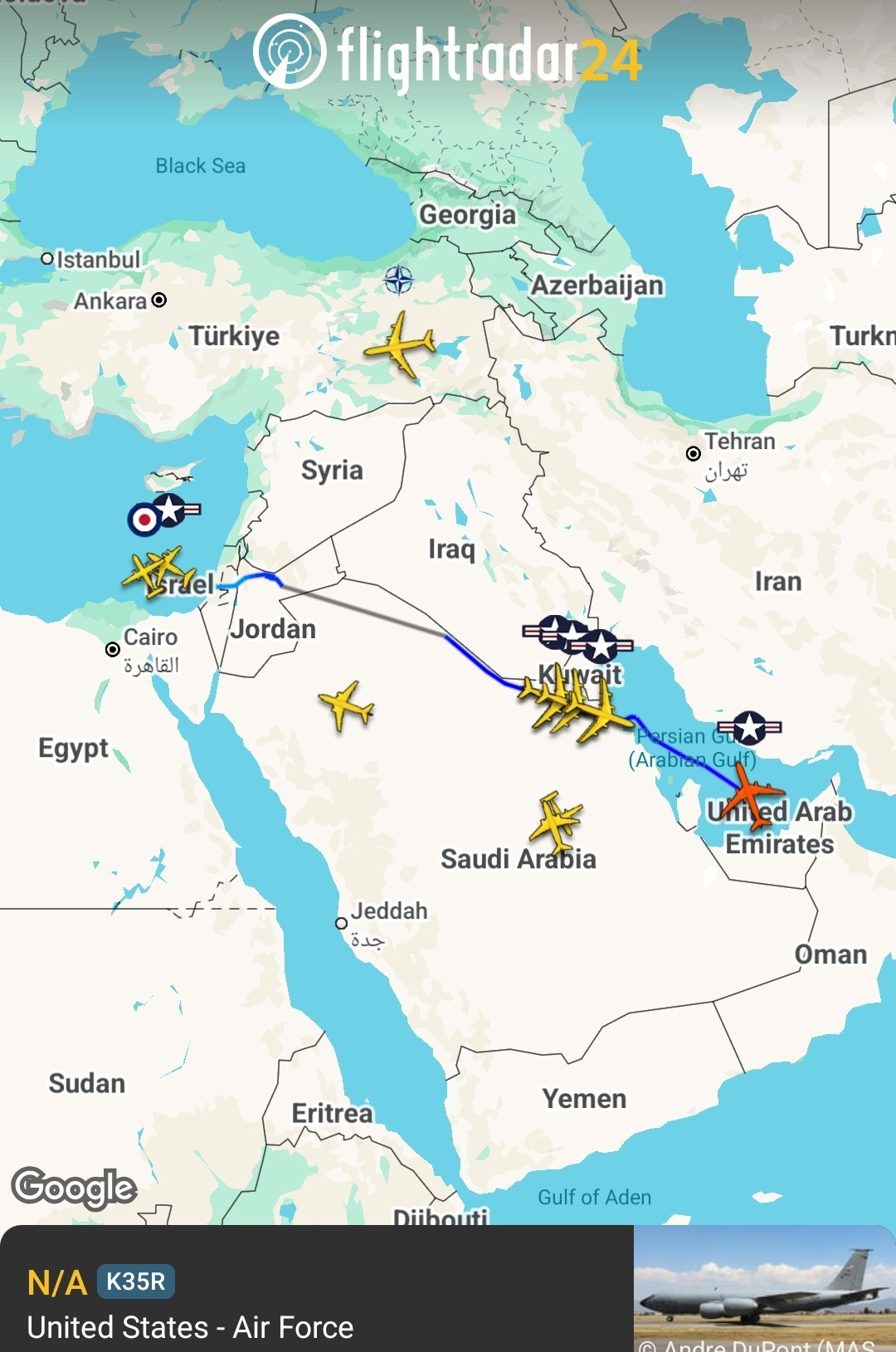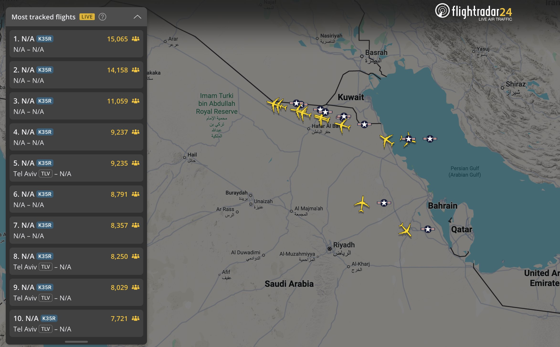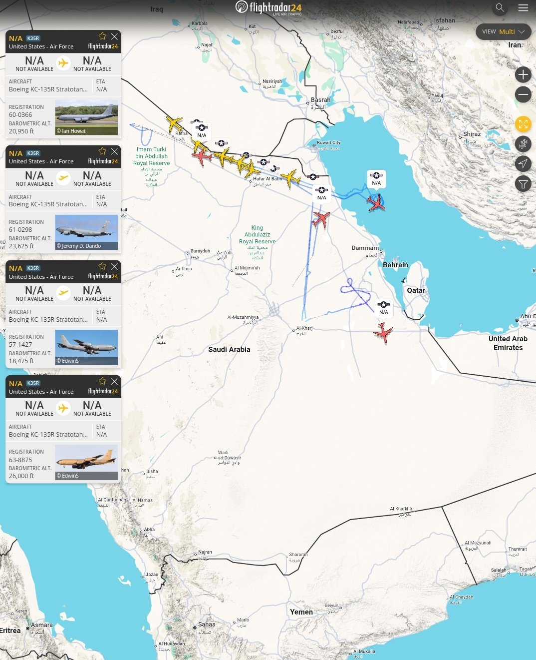🔻中东上空的美军大量加油机,一度都处于开应答机飞行的状态。🔻之前,从费尔福德皇家空军基地起飞的 B-1B 轰炸机,甚至都可以在公开的 ADSB 上被追踪,编号为 85-0088🔻自“科威特王牌飞行员”事件以来,它们一直在 Flightradar24 上公开运行,甚至还包括昂贵的 E-3 。🔻过去的美军神话是这么吹的:“预警机指挥美军千机大机群。”🔻现在,美军靠向人人都能看到的全域公开广播 ADS-B 信号,试图躲避“科威特王牌飞行员”和“友军奉命撞击我机”。伊朗30枚超重导弹袭击以色列伊朗向以色列发动最猛烈空袭海外新鲜事中东现场直击