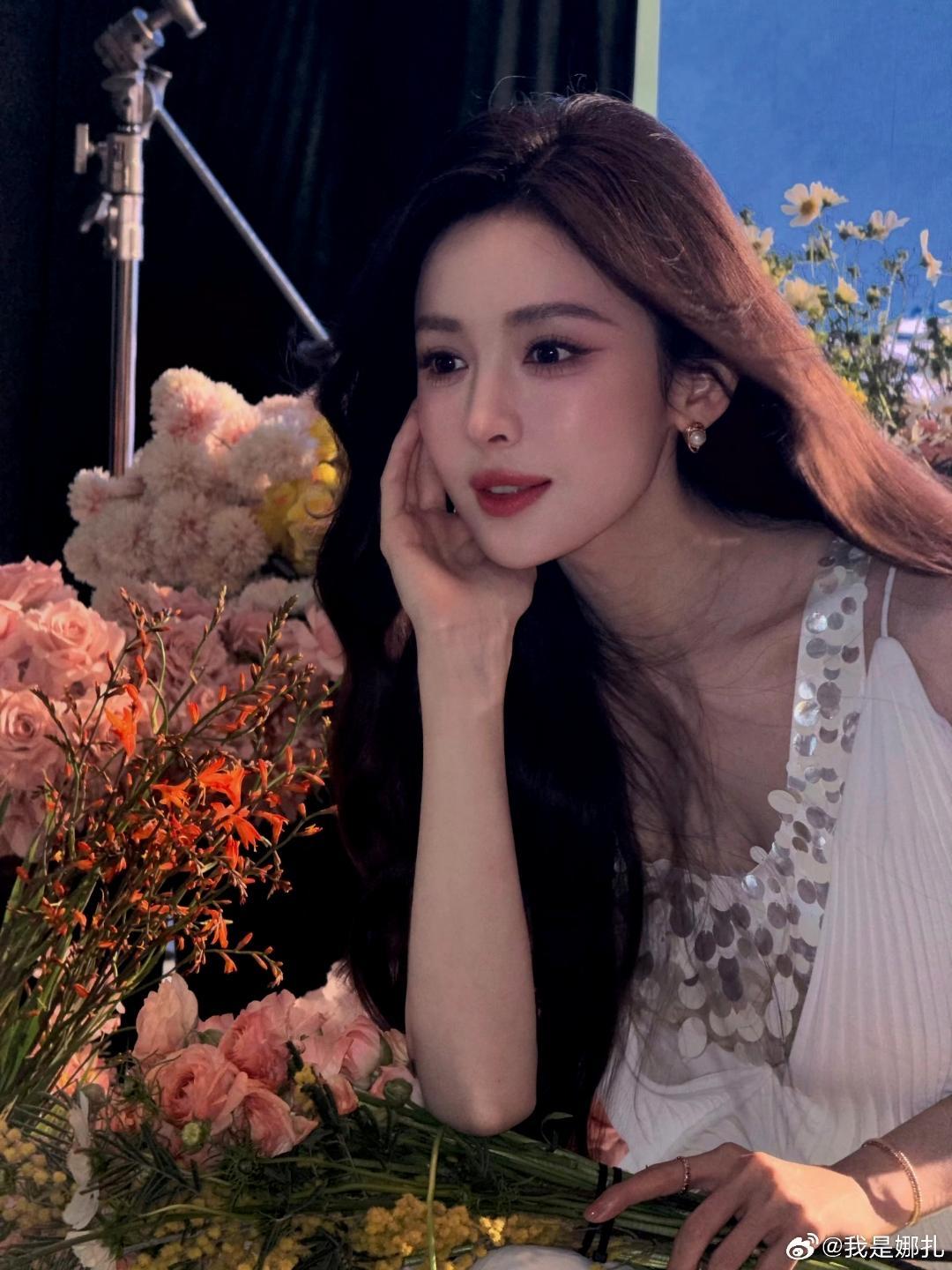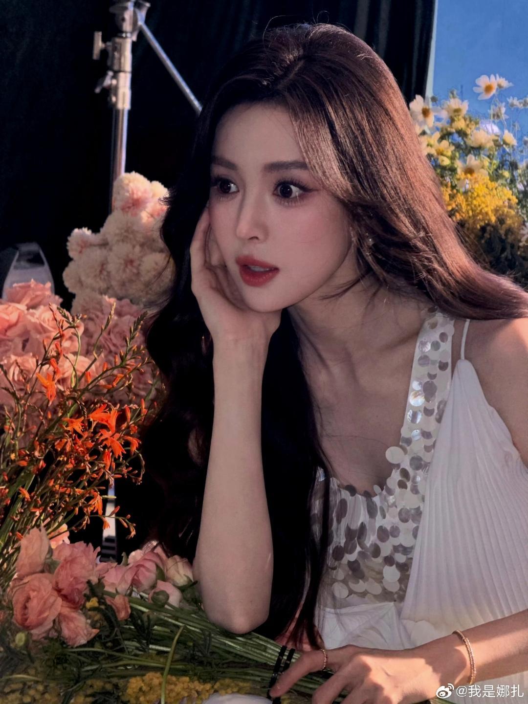当繁花簇拥遇上白裙流光,古力娜扎这组造型把“清冷柔媚”的氛围感拉满了。 一袭白色吊带裙,肩带处缀满银亮圆片,在柔光下泛着细碎光泽,利落剪裁衬出优越肩颈线条,将仙气与灵动平衡得恰到好处。深棕大波浪卷发垂落肩头,衬得眉眼愈发精致,珍珠耳钉与细链手链是点睛之笔,温柔又不失贵气。
