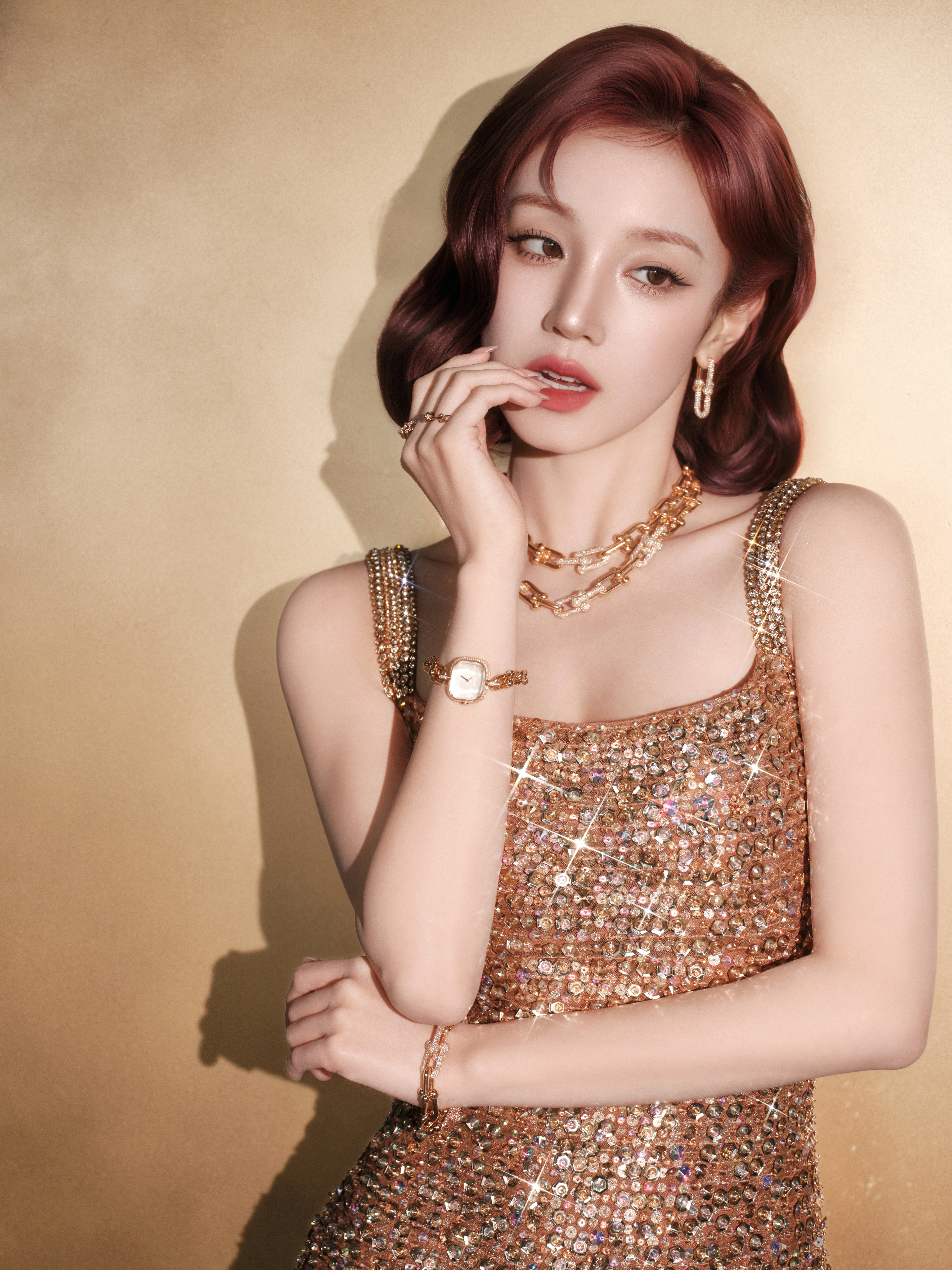 宋雨琦红发金色亮片长裙 宋雨琦金色亮片长裙