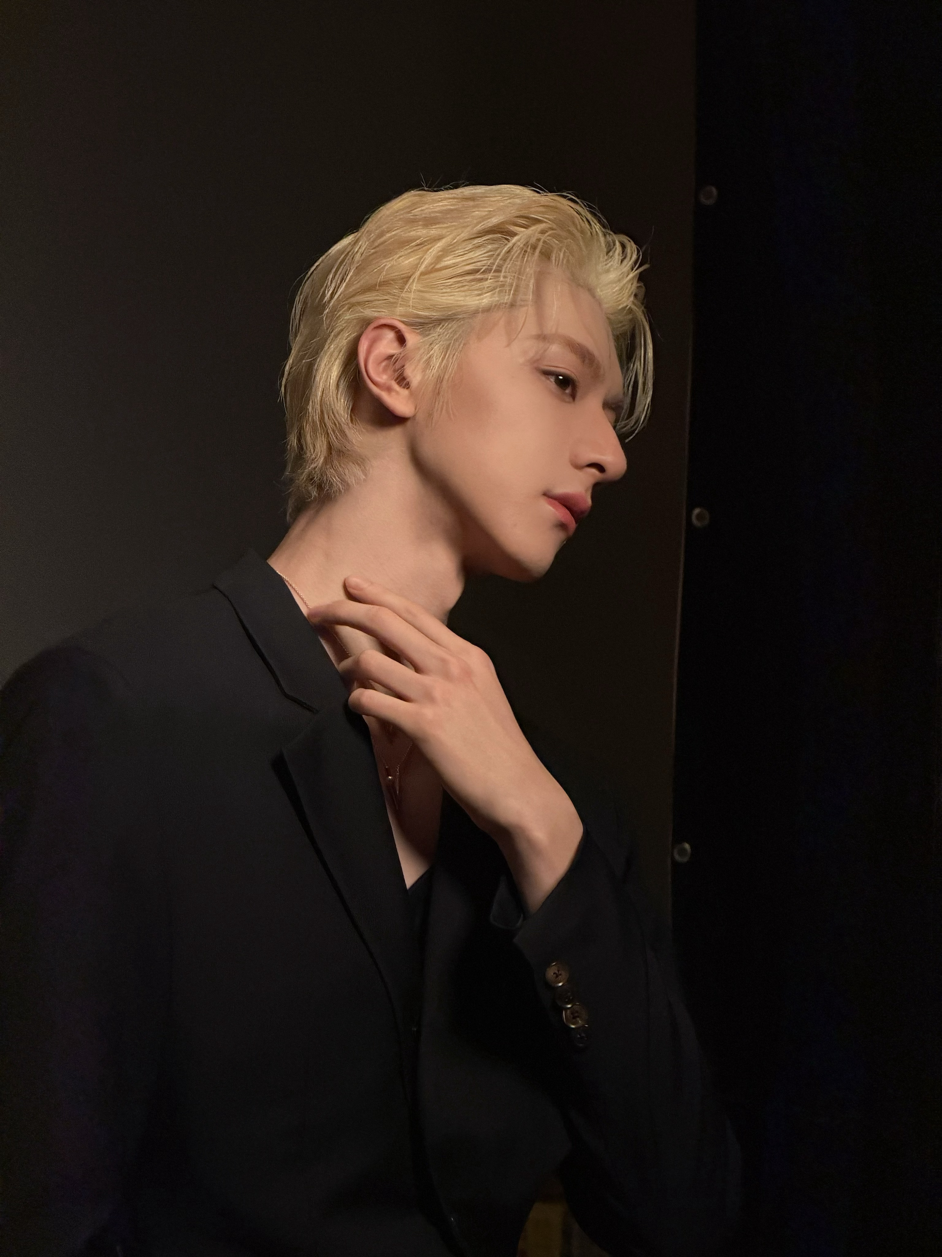 林一金发大片 珠宝叠戴的设计好巧妙,既点缀了颈部又不抢戏,反而把注意力引到他优越的线条上,造型师加鸡腿。