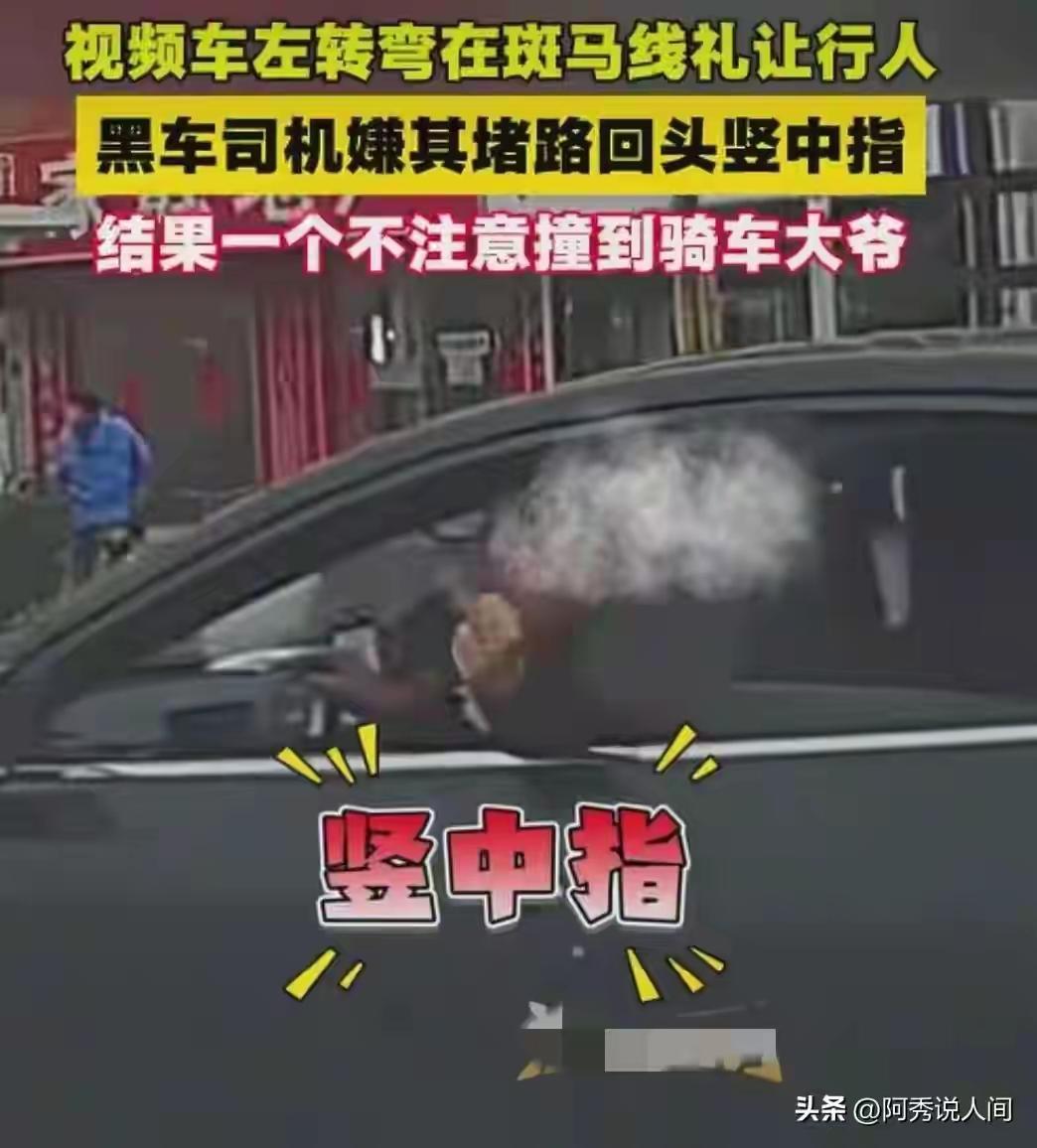 别人都说千万别惹戴眼镜的斯文人,他们骂人不带一个脏字,却会让你回味八百回都没有嚼搞懂一辈被骂得这么绝。 看这个戴眼镜开豪车的,看着文质彬彬,气质优秀,就因为别人按了下喇叭,他就对女司机竖起中指,对人不满竖一下也就足够了,你看他好似对竖中指特别感到满足… 可是骄横,野蛮的人总在不经意间遭到报应,让别人看笑话不说,还被别人拍手:活该。 当这个眼镜在下一个路口,可能情绪还沉浸在自得的气氛中:你惹老子,你敢惹老子… 他的车却将等红灯的摩托车和老人擂翻。 交警一划线,眼睛全责,这下好了,摩托车修理要眼镜掏,老人住医院所有费用也要眼镜掏,不礼行人,闯斑了线,自己还面临扣分学习,到养老院进行义务教育,也许还面临拘留。 这就老子天下第一,蔑视她人的最终恶果。