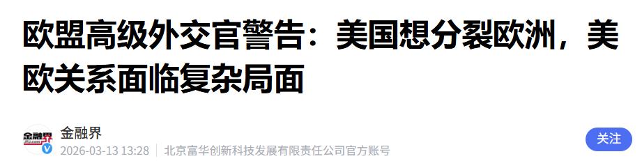 欧盟外交部长卡娅·卡拉斯说:“美国已经非常明确地表示,它想要分裂欧洲。他们不喜欢欧盟。” 特朗普重新当上美国总统后,心里只有“美国优先”这四个字,什么盟友情分、国际规则,在他眼里都不如美国的利益重要。 他搞的单边主义,简单说就是美国想怎么做就怎么做,根本不跟欧洲商量,也不管欧洲的死活,甚至处处针对欧洲,目的就是要瓦解欧洲一体化,让欧洲27个成员国不能团结在一起,最后只能一个个依附美国,听美国的指挥。 在经贸上,美国对欧洲的打压可以说是明里暗里都来,一点都不手软。最近这段时间,美国贸易代表办公室以“产能过剩”“强迫劳动”为借口,对包括欧盟在内的多个经济体发起了301调查,说白了就是找个理由,准备对欧洲的商品加征关税、设置贸易壁垒。 特朗普还频繁调整关税政策,前几天刚说对全球输美商品加征10%关税,不到一天就涨到了15%,搞得欧洲企业晕头转向,不知道该怎么应对。 更过分的是,美国还动不动就用贸易威胁欧洲成员国。前段时间,美国要打伊朗,想征用西班牙的军事基地,西班牙不肯,特朗普当场就放狠话,要切断和西班牙的所有贸易往来,这相当于要掐断西班牙每年几百亿欧元的进出口生意,让西班牙的汽车、红酒、农产品等产业遭受重创。 美国这么做,就是想挑事,让欧洲成员国之间产生分歧,谁不听话就收拾谁,慢慢分裂欧洲。 除了经贸,在安全上美国也没少给欧洲出难题。特朗普一直逼着欧洲各国增加军费,还威胁说要是不增加,美国就减少在欧洲的驻军,甚至退出北约,让欧洲自己应对安全威胁。 要知道,欧洲很多国家长期依赖美国的军事保护,美国这么一威胁,不少小国就慌了神,不得不跟着美国的节奏走。但美国这么做,并不是真的想保护欧洲,而是想让欧洲在安全上彻底依附自己,让欧洲变成美国的“安全附庸”。 美国还在欧洲内部“搞事情”,专门挑拨成员国之间的矛盾。美国去年12月和今年1月发布的国家安全战略报告和国防战略报告里,明确提出要在欧洲内部“培养抵抗力量”,说白了就是支持那些反对欧洲一体化的势力。 特朗普政府还多次公开支持欧洲的极右翼政党,比如美国副总统曾会见德国选择党主席,特朗普还为法国极右翼领导人勒庞发声,这些极右翼势力都主张本国优先,反对欧盟团结,正好符合美国分裂欧洲的心思。 特朗普还经常公开贬低欧盟,一点都不给欧洲留面子。他在采访中指责欧洲的移民政策是“灾难”,说大多数欧洲国家正在“衰落”,还说欧盟的存在就是在“坑美国”。 美国国家安全战略报告里甚至说,欧洲因为移民政策、欧盟监管过度等原因,面临“文明消亡的严峻前景”,这些话明着就是在否定欧盟,动摇欧洲各国团结的信心。 大家都能看明白,美国不喜欢欧盟,根本原因就是欧盟团结起来之后,力量会变得很强,能和美国平起平坐,在经贸、国际事务上都能和美国讨价还价,这不符合美国的霸权利益。 所以美国才想方设法分裂欧洲,让欧洲各国变成一个个孤立的个体,这样美国就能轻易控制它们,让欧洲各国都听美国的,从而削弱欧盟的议价能力,让美国在和欧洲的合作中,一直占据主导地位,获取更多利益。 卡拉斯也明确表示,欧盟27个成员国在处理对美关系上确实有分歧,但应对美国的正确方式,不是每个国家各自和美国打交道,而是团结起来一起应对。 因为美国最不想看到的,就是欧洲团结,只要欧洲团结一心,就能和美国抗衡,不会被美国随意拿捏。从短期来看,欧洲可能还要暂时安抚美国,同时慢慢减少对美国的依赖,从长期来看,欧洲只有变得强大起来,才能真正摆脱美国的控制。 现在,欧洲也慢慢清醒过来了,德国总理默茨就说,欧洲不需要美国来拯救,欧洲有能力自己应对问题,还要加强欧洲在安全领域的自主决策。 法国总统马克龙也公开声援西班牙,明确表示美国威胁西班牙,就是威胁整个欧盟,欧盟会团结一致,维护自己的利益。欧盟也已经做好了准备,比如启动反制美国关税的商品清单,必要时会采取坚定的反制措施。 卡拉斯的这番话,其实就是把美国的真实面目彻底戳破了。美国嘴上说着和欧洲是盟友,实际上心里全是自己的利益,为了自己的利益,不惜分裂欧洲,把欧洲当成自己的附庸。 这件事也能看出来,大国之间的博弈越来越明显,美国的单边主义和霸权行为,不仅伤害了欧洲盟友,也破坏了国际秩序。 而欧洲的清醒和团结,或许就是打破美国控制、维护自身利益的唯一出路,也让全世界看到,没有哪个国家愿意一直被别人拿捏,每个国家都有权利维护自己的主权和利益。