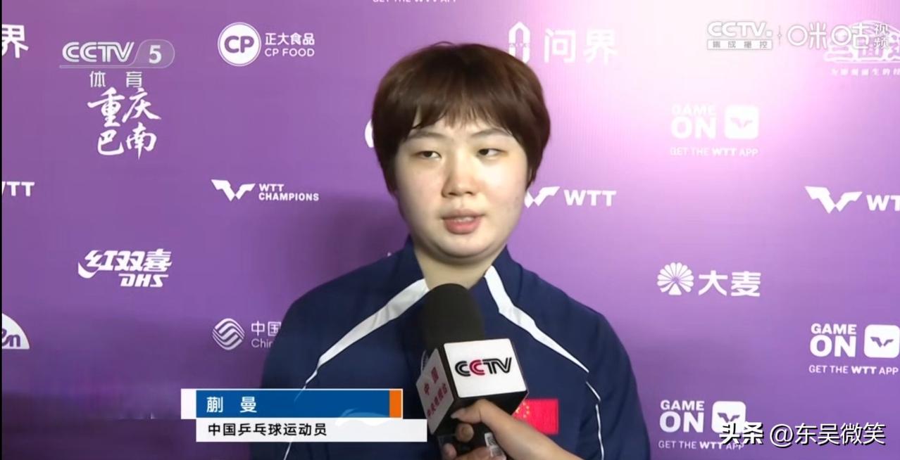 蒯曼在爆冷击败孙颖莎后,接受了记者的采访。 蒯曼说,确实没想到,自己最近的状态没有前段时间好,但一直在调整自己,没想到能赢下比赛。 确实,大家都没想到,尤其是第六局的比赛只让莎莎拿了2分。