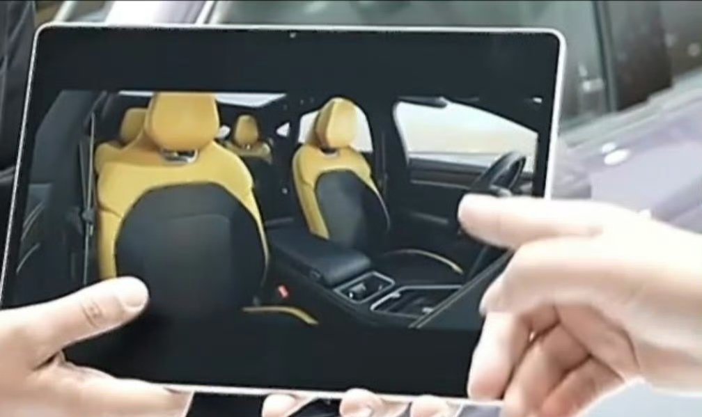 尚界Z7、尚界Z7T内饰座椅曝光,环抱式拼色运动座椅,中间一个中控屏车机,下面双50W无线充电