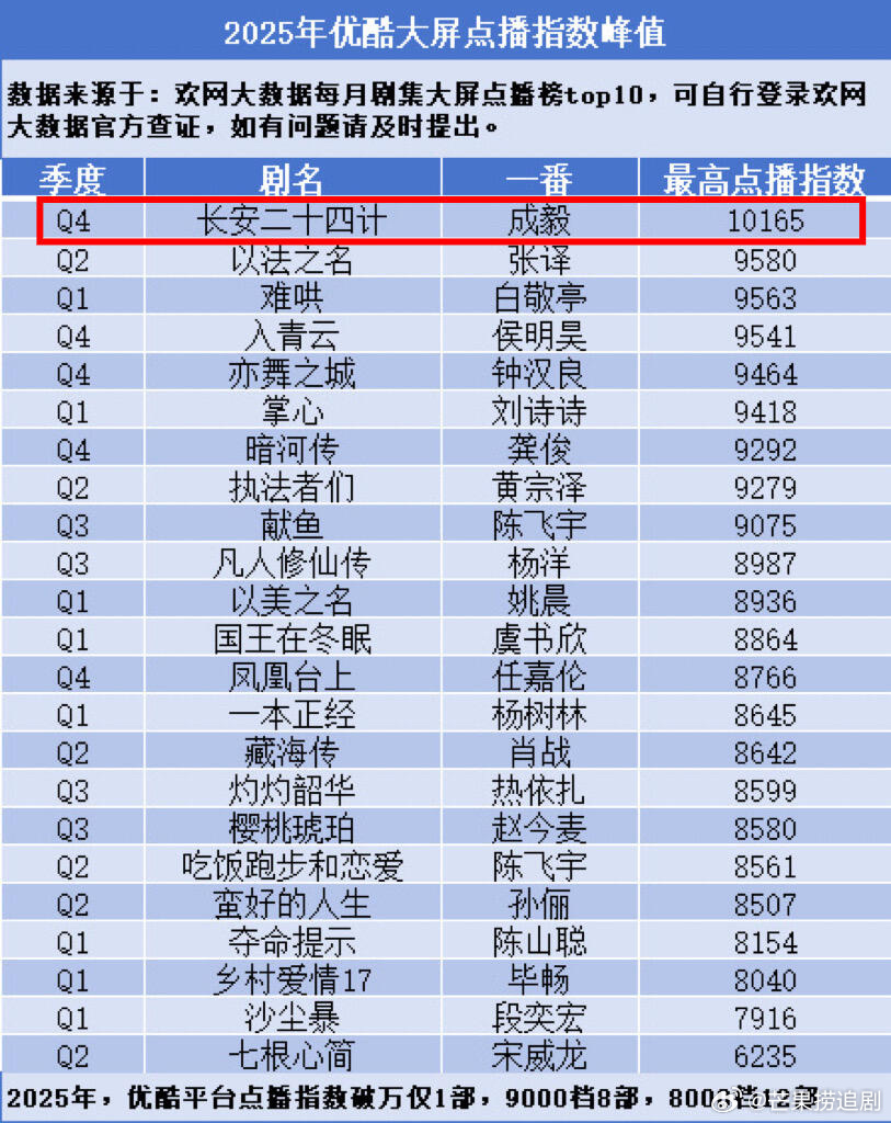 优酷2025大屏点播指数唯一破万剧是成毅《长安24计》,真正的釜底抽薪,唯一一根独苗啊!!
