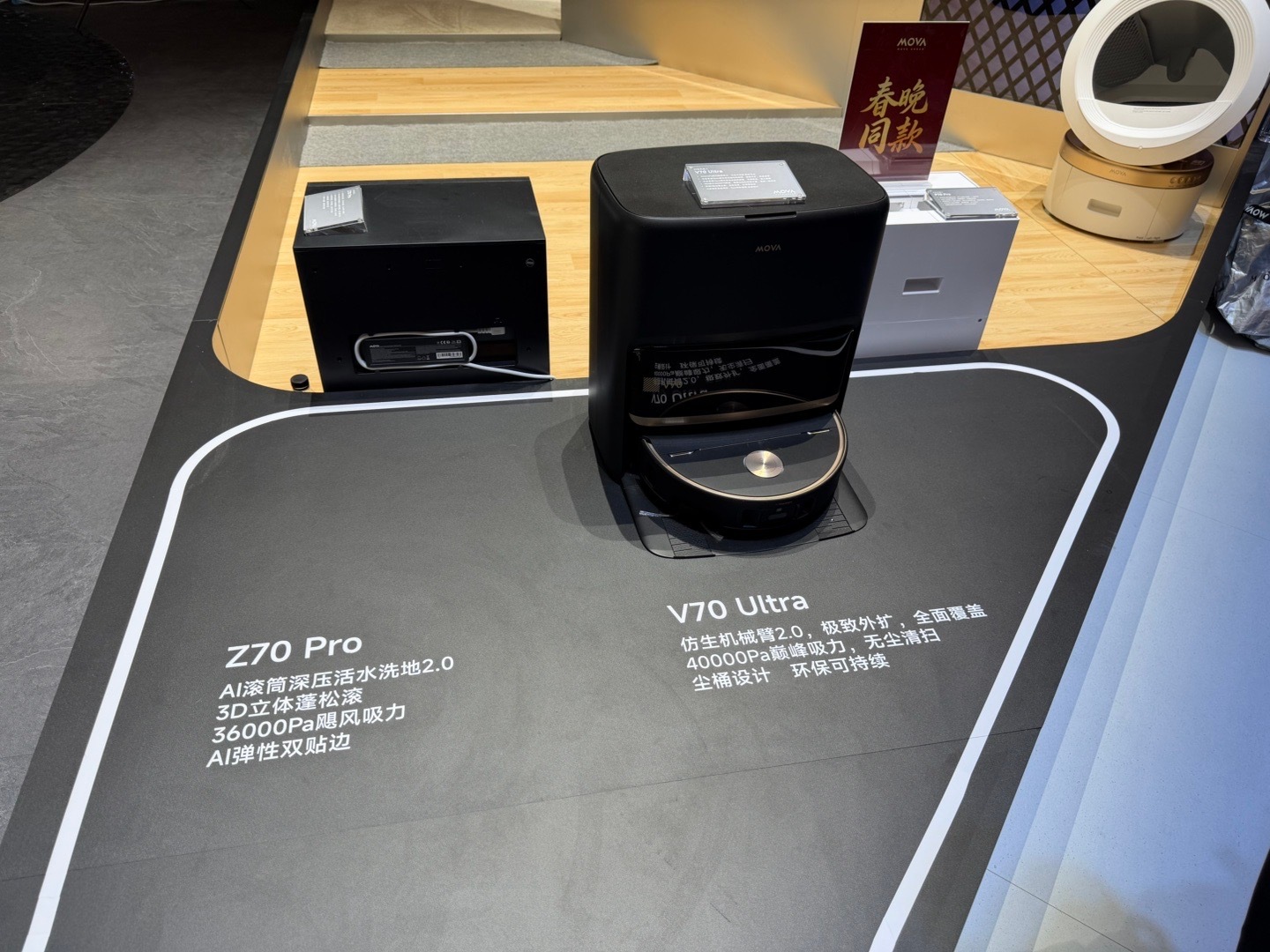 首先是清洁旗舰,扫地机器人Z70Pro!首创AI滚筒深压活水洗地2.0,彻底解决“以脏拖脏”痛点,3D蓬松滚刷让清洁力提升30%。自研36000Pa Turboforce第9代电机+4重全域防缠绕,精准解决养宠家庭毛发困扰。搭配100℃热水洗抹布基站,5.5L大水箱+4L尘袋实现125天免维护,95mm越障+100%AI贴边,全屋无死角清洁!