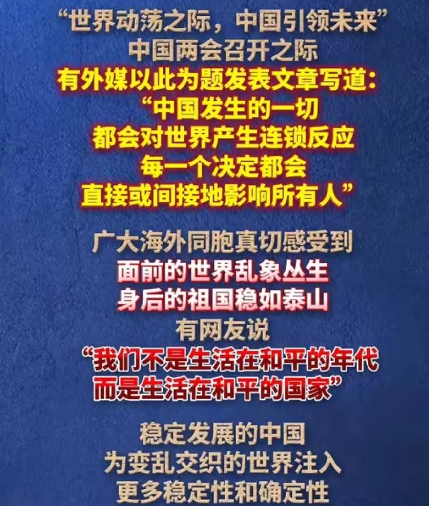 俄罗斯人发出感慨:如今全世界都乱得不成样子,为何只有中国岁月静好? 近日,俄新社网站发表了一篇文章,题目是《正常反而成为轰动的新闻:一切运转有序的中国》。在文章中,他认真思考并剖析了上述问题。实际上,这绝不仅仅是他一个人的疑问,更是全世界许多国家关注的话题。 俄新社这篇文章能快速引发全球共鸣,是因为2026年开年的全球局势已经动荡到极点。中东战火全面升级、俄乌冲突进入第五个消耗年,能源与民生危机直接席卷了大半世界。 中国能守住这份岁月静好,核心是有成熟的治理体系做坚实支撑。从基层矛盾源头化解到全域公共安全防控,每一项工作都有制度保障、有专人落地。 把中国的稳定说成偶然,是完全站不住脚的肤浅认知。新中国成立七十余年,我们始终把发展和安全摆在首位,长期积累才筑牢了今天的社会根基。 2025年中国GDP突破140万亿元,民众安全感连续多年稳定在98%以上,这些官方数据就是最直白的答案。普通人出门顺畅、消费安心、就业有保障,这份安稳触手可及。 全球多数国家深陷政策短视、内耗不断的泥潭,根本做不到长期布局。中国坚持接续推进五年规划,国家发展方向从不轻易摇摆,这是独有的制度优势。 不少外国观察者只看到表面的有序,却无视我们在安全领域的持续攻坚。扫黑除恶常态化、反诈专项整治、应急体系升级,每一项都在守护百姓生活。 俄新社那句“正常成了轰动新闻”,道尽了当下世界的无奈与稀缺。在变乱交织的大环境里,中国的稳定早已成为全球稀缺的确定性力量。 那些质疑中国治理模式的声音,本质是对中国国情的完全不了解。脱离14亿多人口的治理现实去评判,得出的结论必然片面又偏颇。 中国的安稳从来不是凭空而来,是国家与民众同心同德的结果。上下一条心、政策贴民心,才能在全球风浪里稳稳站住脚。 各位读者你们怎么看?欢迎在评论区讨论。