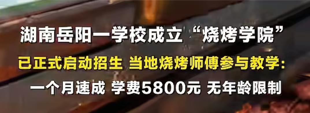烧烤大学都成立了,这个世界是不是颠了!湖南岳阳成立了烧烤学院,学历有专科也有本科,学制2.5年到3年,有从事多年烧烤的老师傅教学,这个专业让人有点搞不懂啊,学啥呢!这有人问你大学学的什么,你好意思说嘛!也不知道本科毕业后,能不能考公考编!