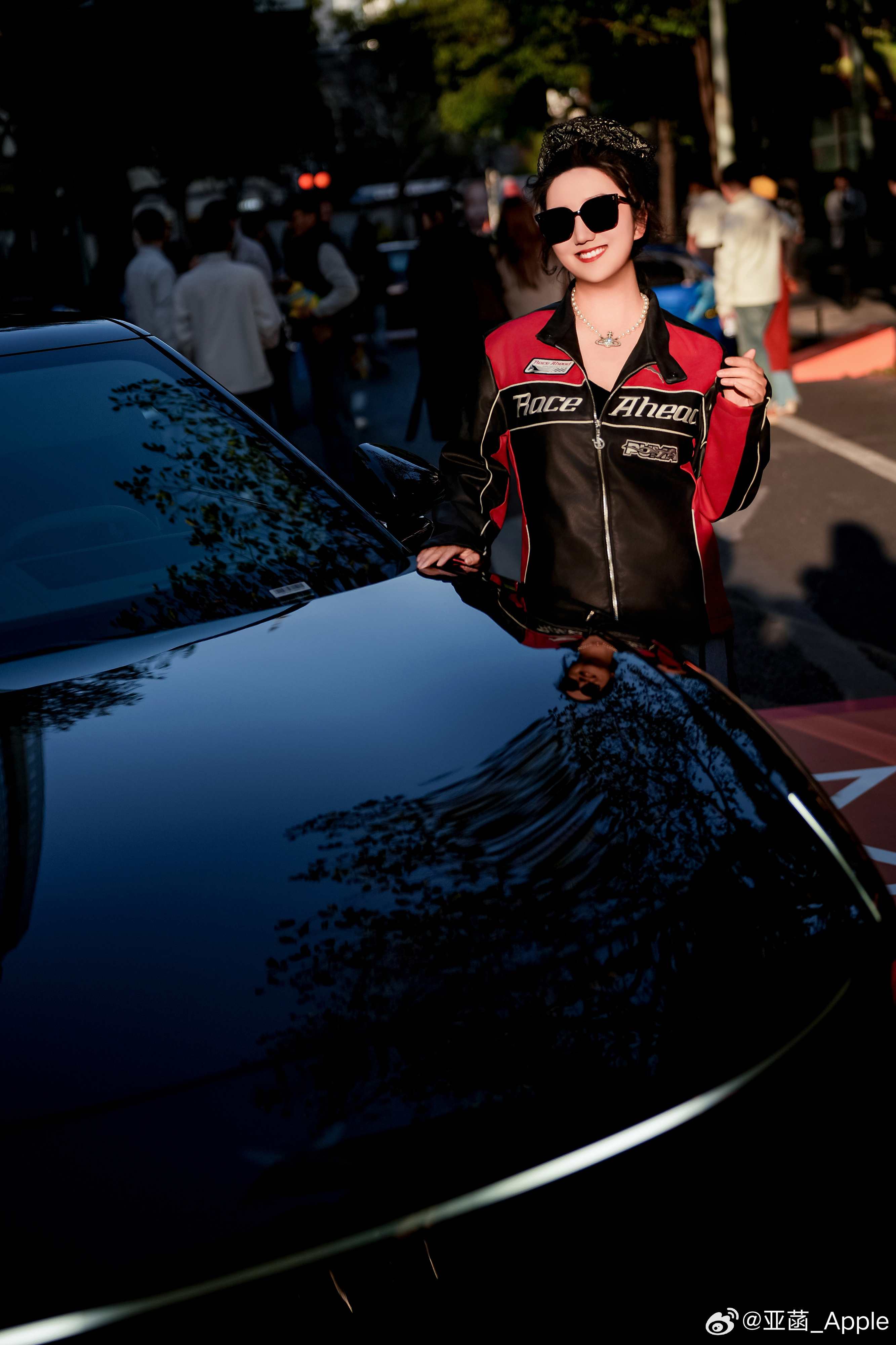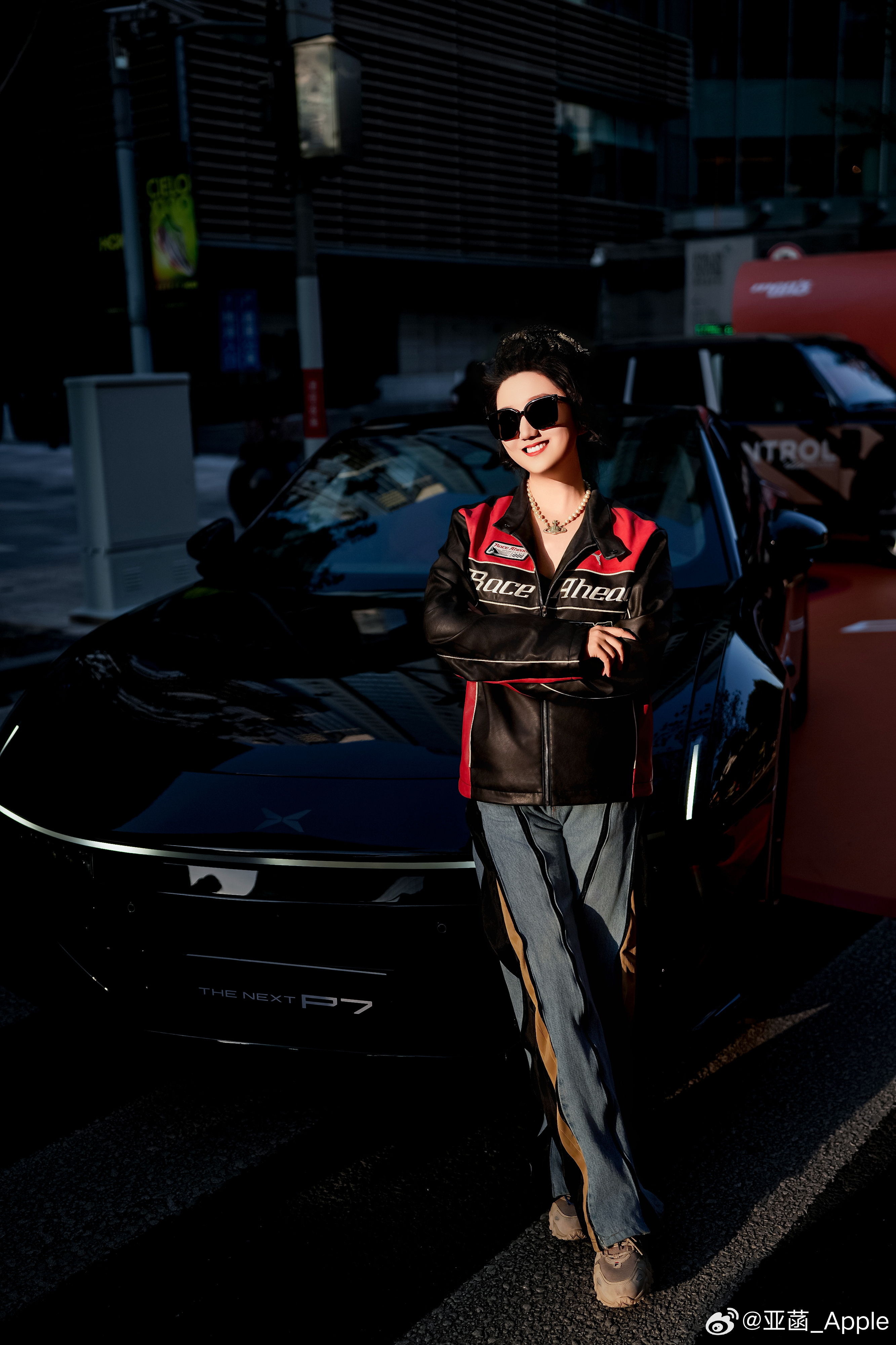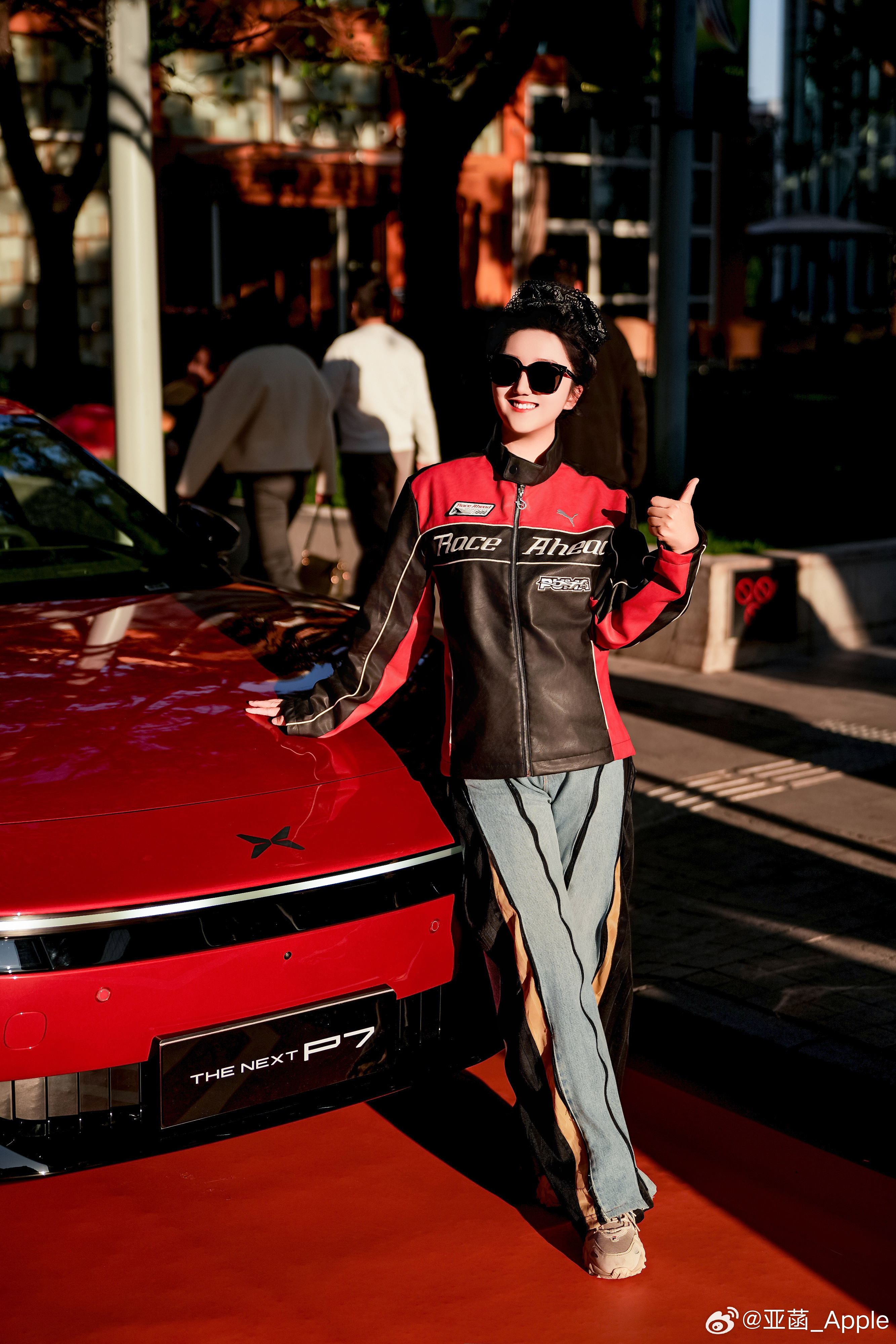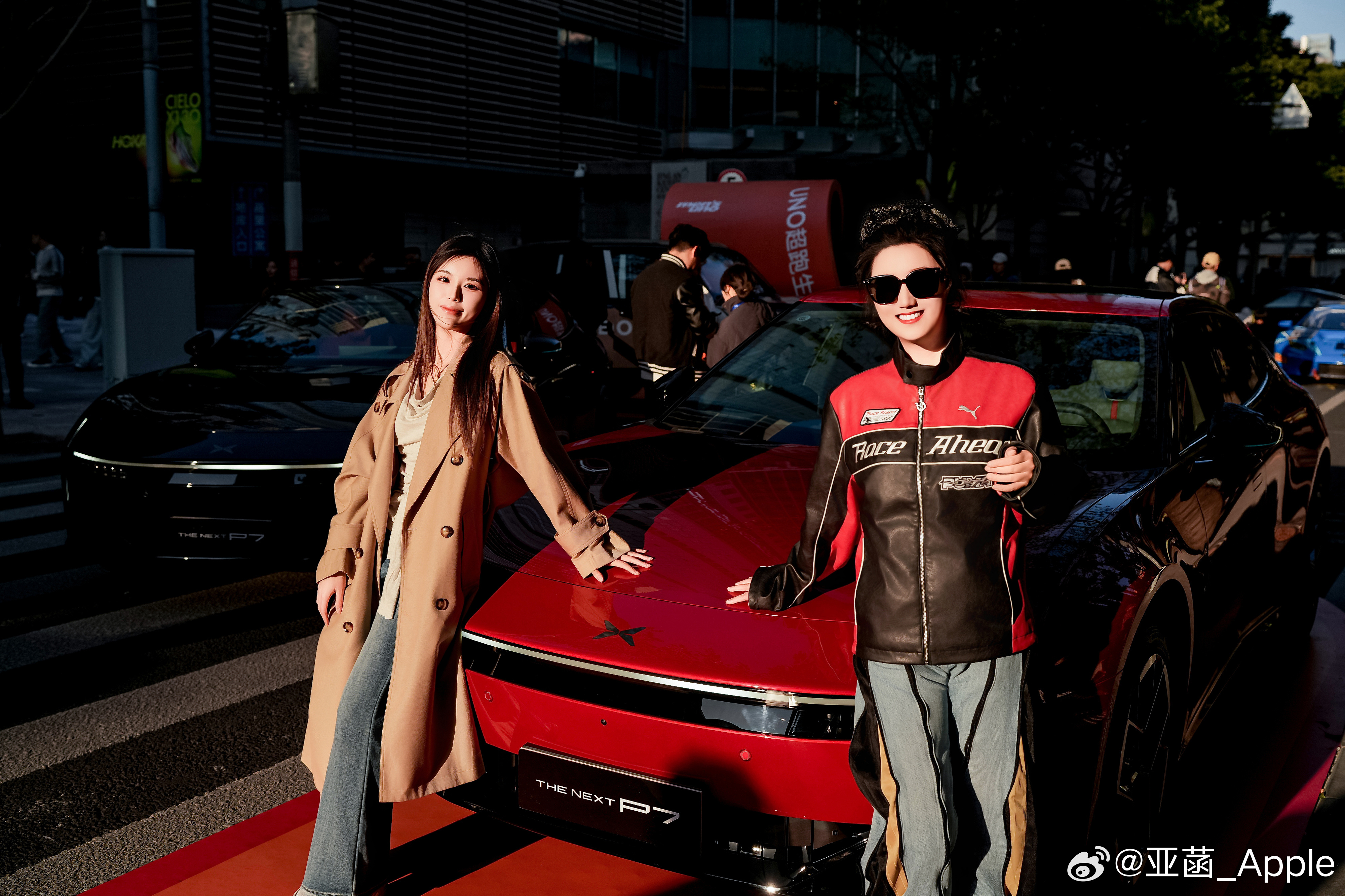 今天特意穿了同色系的赛车皮衣,和新车色很搭耶小鹏P7新色亮相UNO超跑生活节小鹏P7新色气场碾压同框超跑