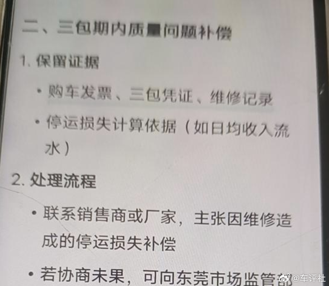 汽车315线上车展 【埃安AION S动力电池故障造成停运损失】 有网友投诉称,他购买的是一台广汽埃安AION S(2022款 魅 580),“我的车辆因电池质量问题被拖至服务店进行质车保维修,维修时长长达15天(1月28日下质午至2月14日才修好并取回车辆),由此导网致我产生停运损失6000元,我全靠这台车辆维持生计、养家糊口。根据相关法律规定,因第三方原因导致停运的,应当予以赔付,我已向厂家客服反馈该问题,但厂家拒绝赔付。该停运损失是因车辆自身质量问题维修所造成的,厂家理应承担赔付责任,为何拒绝赔付?难道非要逼着我通过上诉、打官司的方式维护自身合法权益吗?根据《家用汽车产品修理更换退货责任规定》,包修期内因质量问题单次修理时间超过5日的,修理者应提供备用车或支付合理交通费用补偿,而我因车辆维修产生的停运损失,厂家更应依法赔付。”