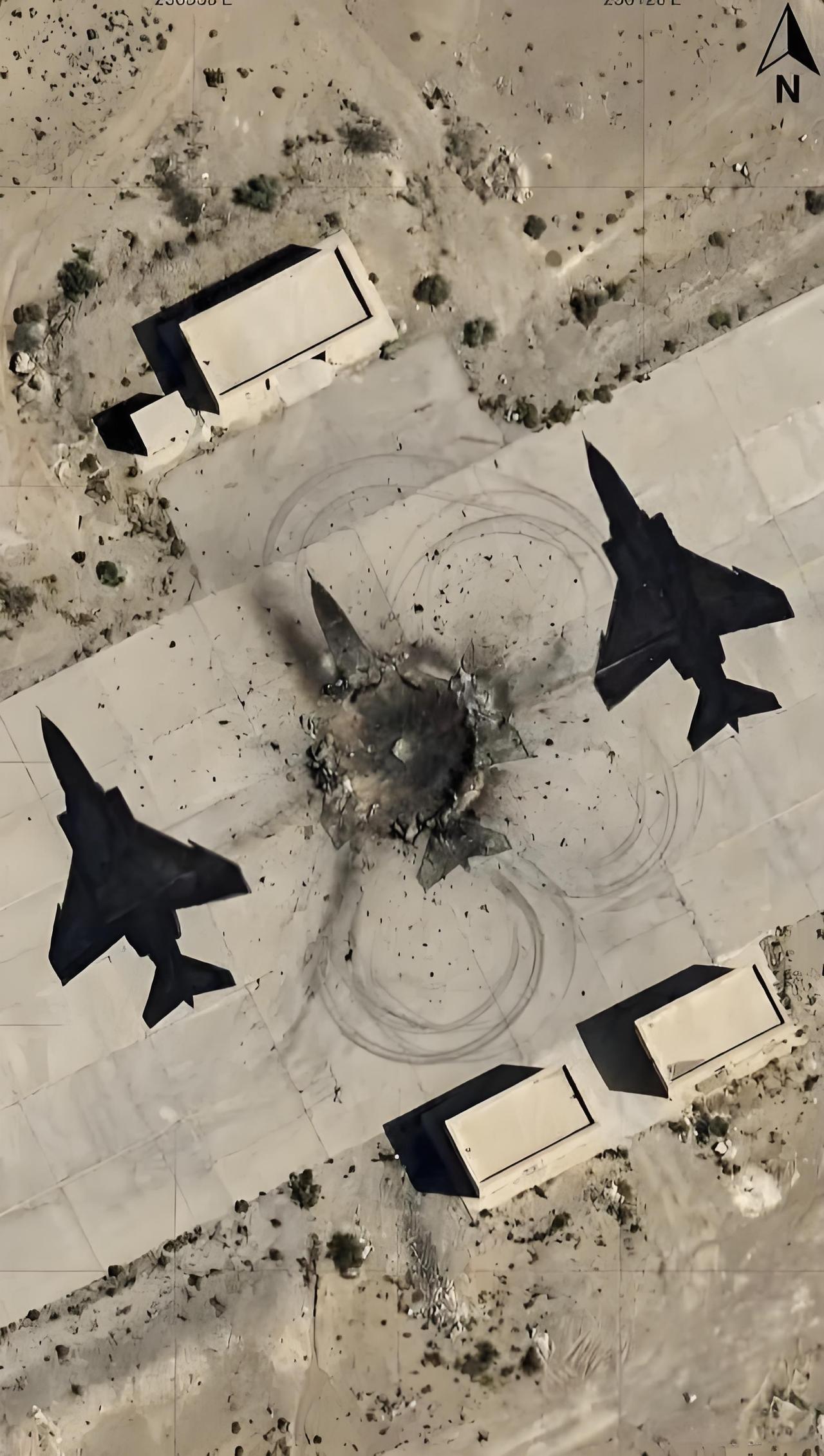 颜料“击落”导弹。 伊朗花几百美元的丙烯颜料和人工费,就让以色列空军受到诱惑,拿上百万美元的导弹去摧毁。 伊朗画师绘制的F-14以及米-17,非常逼真,完全可以以假乱真,根据太阳的角度画了阴影,把以色列空军骗过了。 以色列空军炸毁了以后,回去邀功,对外宣布击毁了1架伊朗米-17直升机和2架F-14战斗机,并公布了导弹轰炸的画面。 画面中爆炸落点周围有土浪,被炸了一个至少有五米左右的深坑,画面边缘有热焰,唯独“目标”纹丝不动,“战斗机”的头部以及尾部没有被炸毁,如果是真的,整个战机应该分体,而旁边的两架战斗机也没动,结果才发现,原来这是涂在水泥停机坪上的油漆画。 不过,以色列空军还是非常厉害,炸毁战斗机的位置是命中,而且是战斗机中间,非常精准。