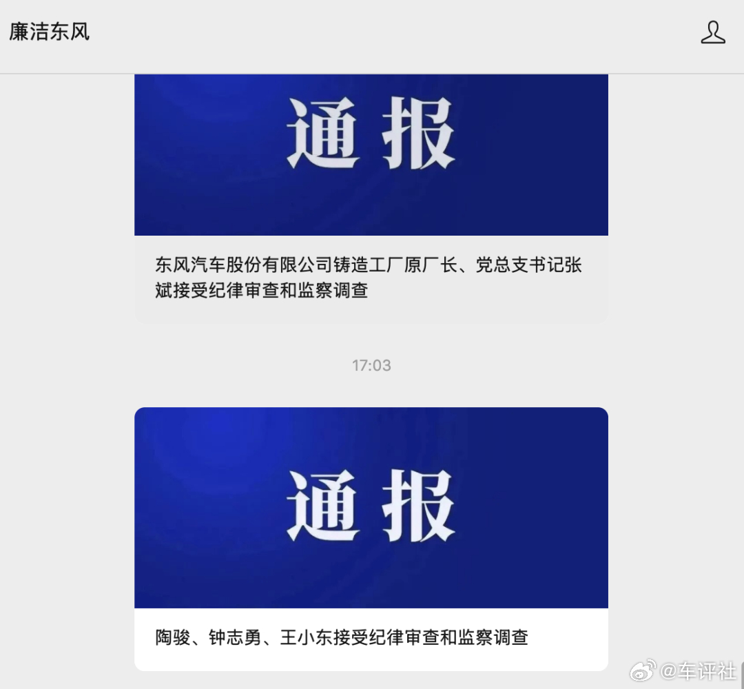 作为国有重点车企,东风公司始终以刀刃向内的自我革命精神,坚定推进党风廉政建设和反腐败斗争,对腐败行为坚持零容忍、严查处,近期连续通报的违纪违法案件,彰显了其净化政治生态的坚定决心。车评观察