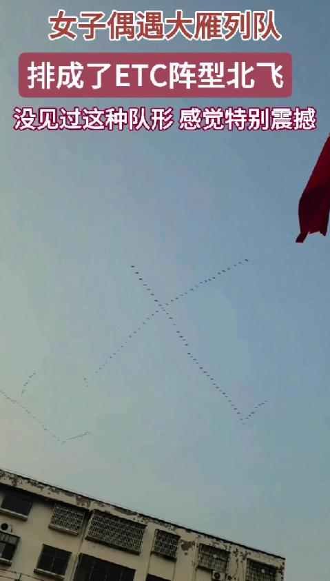 解释不清了,河南,一女子接孩子放学,发现有人指着天空,嘴里在说些什么,女子抬头一看直接傻眼了,只见成群的大雁排成ETC阵型往北飞,女子觉得这画面太震撼了,从来没见过大雁还能这么排队。 女子本来没太在意,觉得无非是天上飞过几只鸟或者有什么奇怪的云彩,可架不住周围的人越聚越多,议论声也越来越大。她索性收起手机,跟着大家的目光抬头望去,这一看直接傻眼了,站在原地半天没动。 天上飞着一大群大雁,正朝着北边的方向飞去,关键是它们的队形,根本不是课本里常说的“人”字形或者“一”字形,反而排得格外特别,熟悉的人一眼就看出来,那阵型居然像极了高速路上的ETC通道,整齐又规整。 其实这段时间,本来就是大雁北归的时节,每年这个时候,随着气温回升,在南方越冬的大雁都会集群往北飞,前往北方的繁殖地,途中还会在各个湿地驿站停歇补给。只是没人想到,这群大雁居然会排出这么新奇的队形,女子后来回忆说,当时大雁飞得不算太高,能清晰地看到每一只大雁的身影。它们扇动翅膀的节奏都差不多,整个阵型保持得特别稳,不像平时看到的雁阵那样会时不时变换形状。 她反应过来之后,赶紧掏出手机,双手都有点发抖,生怕错过这难得一见的画面,对着天空拍个不停,连孩子放学出来喊她都没听见。后来孩子跑到她身边,顺着她指的方向抬头看,也忍不住发出了惊叹声。还拉着她的衣角问,妈妈,这些大雁怎么不排人字了,它们这是要去干嘛呀。 女子这才回过神,一边拍视频一边跟孩子说,它们这是要飞回北方老家呢,只是这个队形,妈妈也是第一次见。当天晚上,女子把拍的视频发到了网上,本来就是想记录一下这个特别的瞬间,没指望能有多少人看。可没想到,一夜之间视频就火了,播放量蹭蹭往上涨,评论区更是炸了锅。 很多网友看完视频,都觉得这场景又神奇又治愈,要知道大雁编队飞行从来都是有讲究的,每一种队形都是为了省力。可这种像ETC一样的阵型,别说见过,很多人连听都没听过。有人在评论区调侃,说大雁这是提前办了ETC,往北飞都不用排队,效率直接拉满。 还有人打趣,说领头的大雁怕不是装了导航,不然怎么能把队形排得这么整齐,甚至还有网友开玩笑,建议给这群大雁颁发“最佳队形奖”。大家你一言我一语,热闹得不行,还有不少网友分享自己小时候见过的大雁迁徙场景。说从来没见过这么新奇的阵型,不知道是大雁们一时兴起,还是有什么特别的原因。 其实大雁的迁徙之路并不容易,几千公里的路程,要飞一两个月,途中还要应对风雨和天敌,编队飞行能让它们节省不少体力。后面的大雁可以借助前面大雁翅膀产生的上升气流,减少飞行阻力。平时我们见到的“人”字形和“一”字形,都是大雁经过千百万年进化出来的省力阵型,可这次的ETC阵型,到底是它们临时调整的,还是有什么我们不知道的原因,没人能说清楚。 还有网友发现,这段时间河南多地都有市民看到大雁北飞,只是大多都是常规队形,唯独女子拍到的这一群,排出了如此特别的阵型。有人猜测,可能是这群大雁的数量比较多,常规队形不好保持,才无意间排出了类似ETC的样子。也有人说,说不定是大雁们在迁徙途中换领头雁,队形暂时发生了变化,刚好形成了这样的形状。 直到现在,也没人能准确解释,这群大雁为什么会排成ETC阵型北飞,它不像其他自然现象那样有明确的科学解释,可就是这份神奇,让更多人关注到了大雁迁徙,也感受到了大自然的奇妙。视频火了之后,不少人都开始抬头关注天空,希望能偶遇这群“自带ETC”的大雁。看看它们到底要飞往哪里,会不会再排出同样的阵型。 不知道大家有没有见过大雁迁徙的场景,有没有见过除了“人”字形、“一”字形之外的其他阵型?你们觉得这群大雁排出ETC阵型,是偶然巧合,还是另有原因?不妨在评论区说说你们的看法,一起聊聊这大自然里的神奇瞬间。