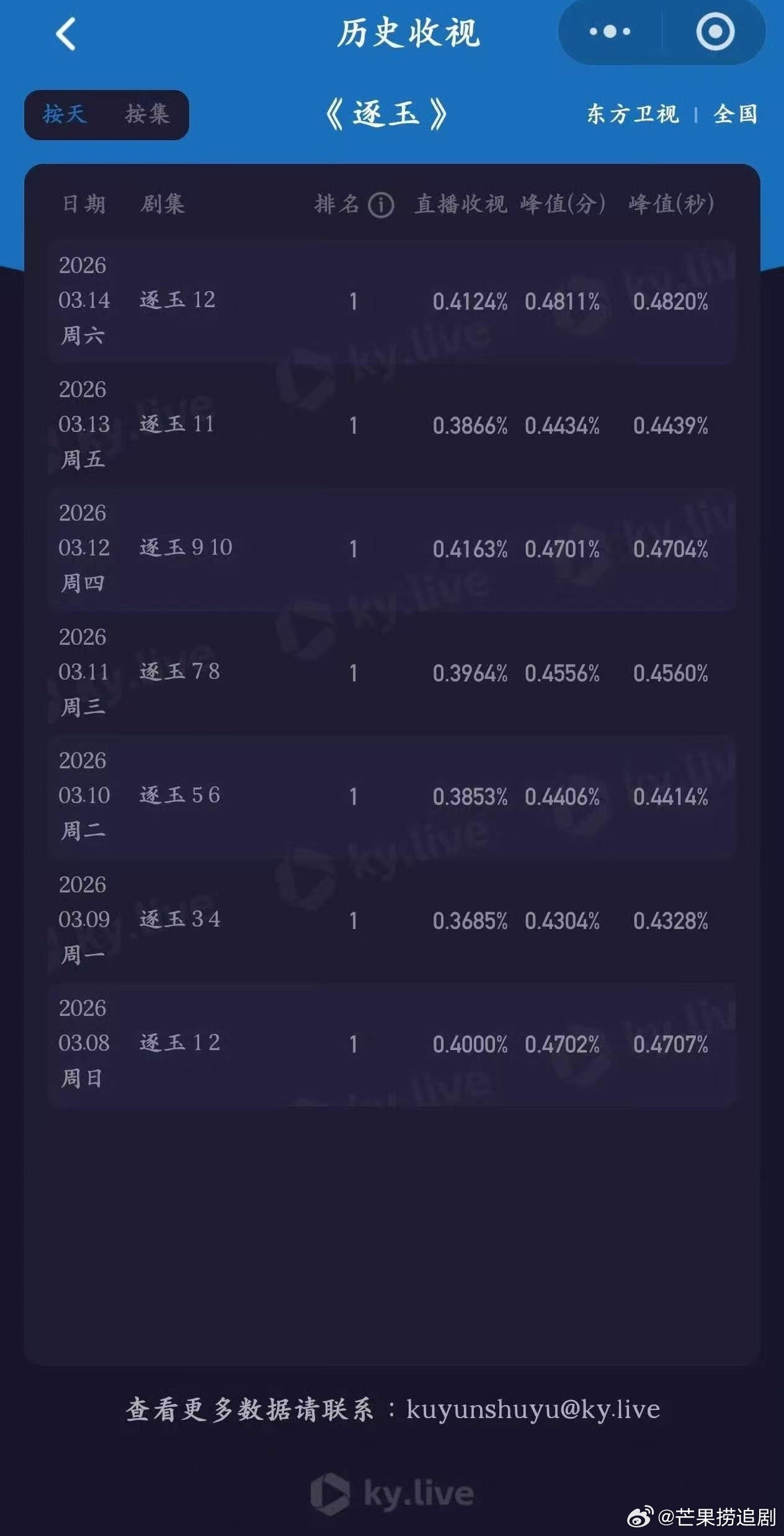 正视《逐玉》台网双爆很难吗?全平台霸榜后,收视率又双叒叕破记录了,继cvb卫视六连冠,拿下东方卫视古装史冠之后,逐玉酷云的收视率又创新高。作为IPTV端口计数的数据,官方数据,这是完全一点不能造假的。