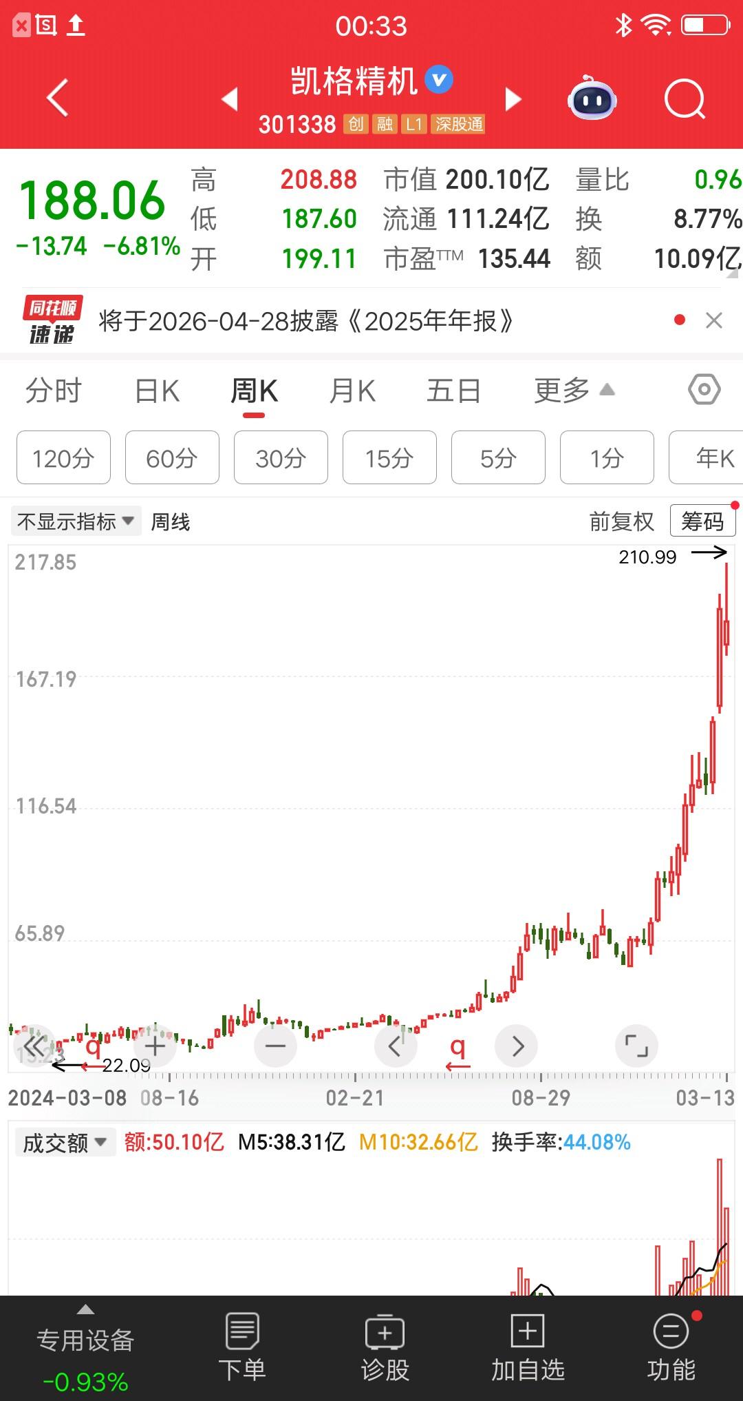 两年狂涨近12倍!这只“隐形牛股”从18冲到210,背后藏着AI大风口🔥 谁能想到,一只低调到几乎没存在感的A股,悄无声息从18元一路走高到210元,两年翻了近12倍,K线走出了教科书级别的长牛形态。 它就是凯格精机,精准踩中AI算力、先进封装、CPO三大热门赛道,靠扎实的基本面和行业壁垒,走出了稳健的长牛行情。 从公开信息看,公司锡膏印刷设备市占率全球领先,深度绑定英伟达、华为等核心客户,近两年业绩持续增长,高端机型订单饱满。 ⚠️ 风险提醒: 当前市盈率已超140倍,估值处于高位,短期波动风险不小,投资需理性看待,切勿盲目追高! A股 牛股 AI算力 先进封装