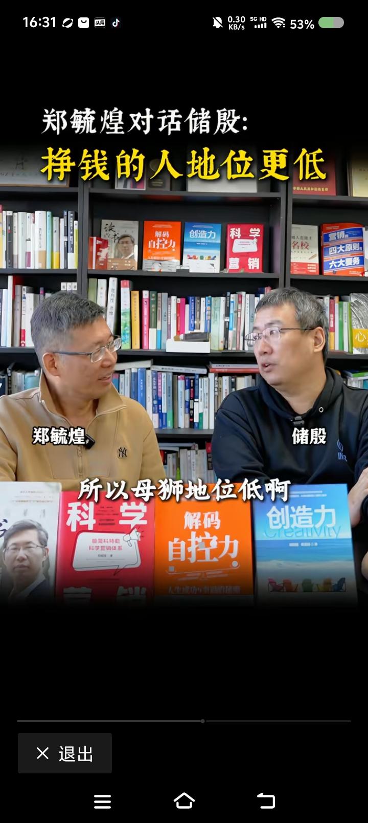 挣钱的那个人,地位低?—— 节目中,储殷和郑毓煌聊天,他俩提出了一个有意思的观点:“男人不要觉得自己挣钱了有多牛,所有动物群体中,负责食物采集的地位都很低。”并举例:工蚁、母狮。所以,男人要摆正自己的位置,男人好惨…… 点评: 男人挣到钱了,获得了“惨”的资格;否则…… 最惨的不是地位低,而是无地位,入不了对方的眼。 所以,他俩说对了一半。 有个富翁死了,妻子嫁给了丈夫的司机。你能说什么?