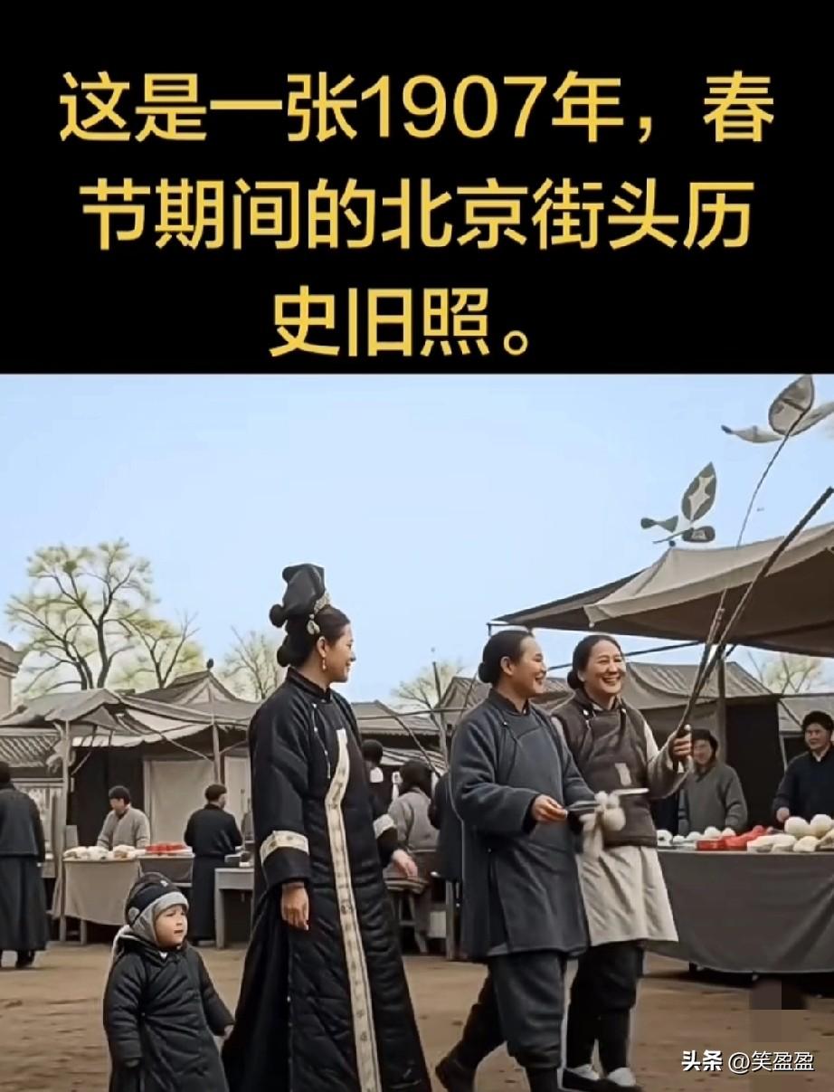有钱的大户人家 这是一张1907年, 春节期间的北京街头的历史照片 街道上的朋友都穿戴整洁干净!