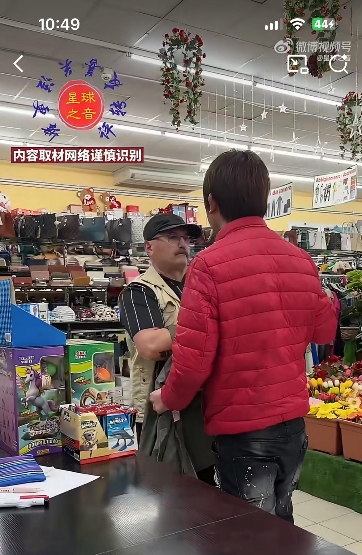 意大利老头华人超市偷东西,被小伙发现打了一耳光。超市收银员估计是他妈,指责小伙看东西不力,近在眼前都被人偷了,小伙子一生气给了偷东西的大爷一巴掌。意大利的小偷多,那是出了名的,很多华人超市苦不堪言,但是也没办法。他们偷东西,抓到了也得放,就算警察来了一样放。如果扣留他们,或者殴打,搞不好就要吃官司,还要赔钱。要是他们有团伙,恶意报复,可能损失更大。