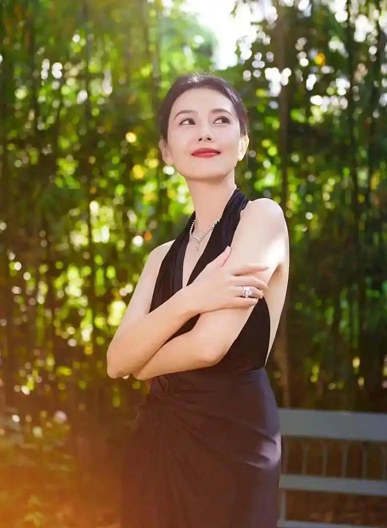44岁的高圆圆穿了一条黑色深V长裙,是一条剪裁极简的黑色深V长裙。 裙子的领口开得恰到好处,刚好露出清晰的锁骨和优越的肩颈线条,一路向下延伸,带着一种克制的性感。 裙身是流畅的H型,收腰设计勾勒出曲线,下摆微微带一点鱼尾的弧度,走起路来裙摆会荡开优雅的波纹。