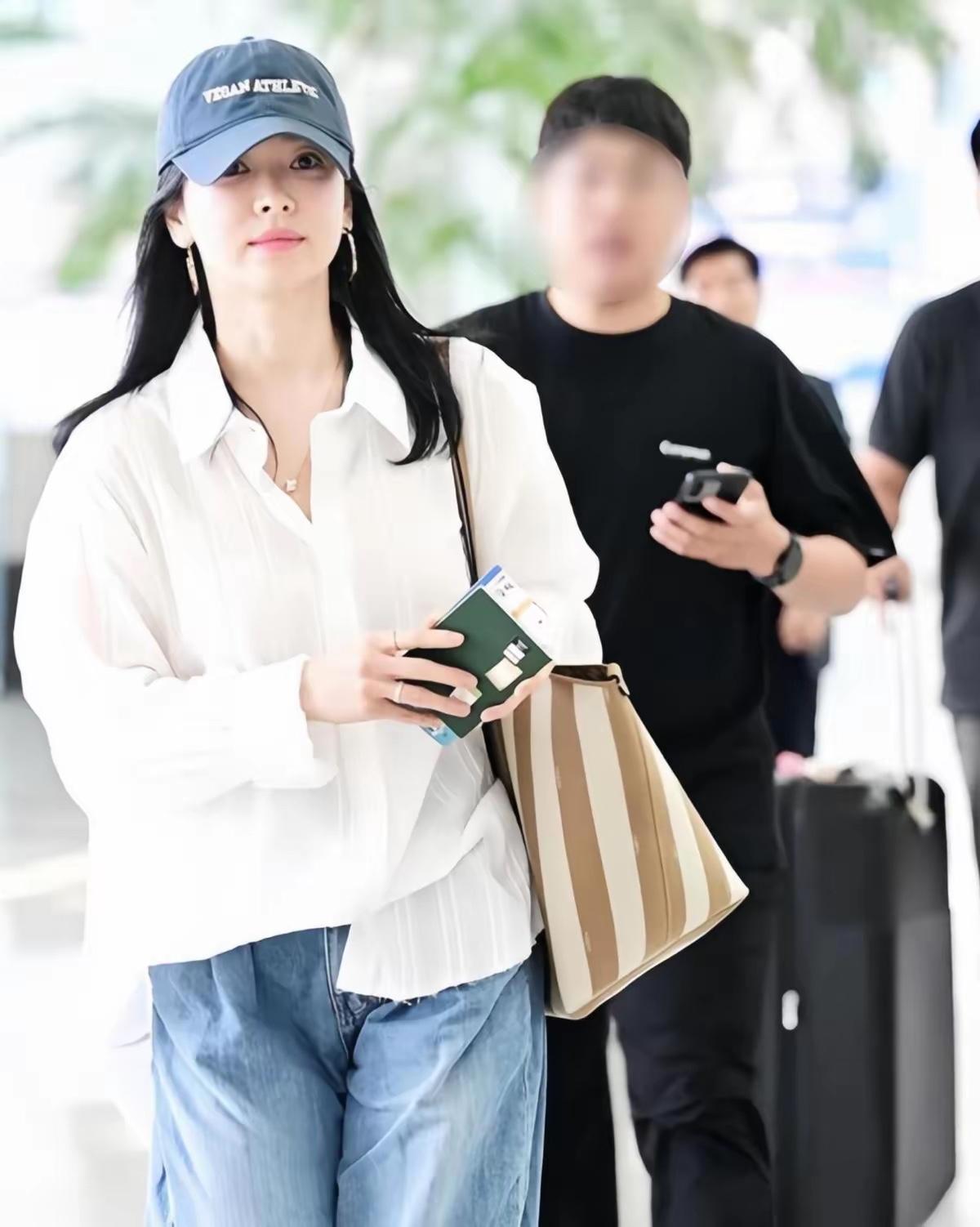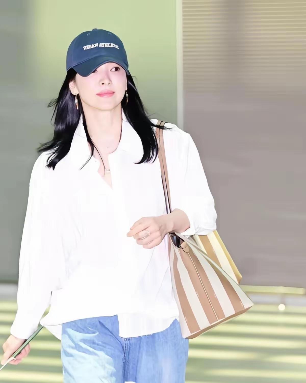 谁能想到,女神宋慧乔仅凭一套机场穿搭,再次把自己焊在了时尚热搜上。这组机场图里,宋慧乔完全抛弃了女明星的“精致包袱”,素颜淡妆配白衬衫和牛仔裤,戴着棒球帽,随性又接地气,却藏着满满的穿搭小心机,特别适合咱们40+女性照搬,不费力就赢很大。 这套看似简单到极致的组合,藏着乔妹多年来的穿搭智慧,完全避开了中年女性最容易踩的“土气”“显老”雷区,反而把随性、高级、减龄这几个关键词揉得恰到好处