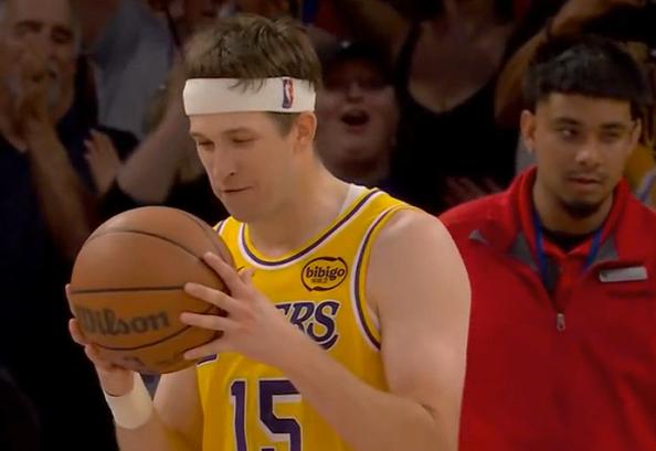 里夫斯神奇的1+2!帮助湖人118-118将掘金拖入加时大战 北京时间3月15日,湖人与掘金的比赛来到最后时刻,球队115-118落后,阿德尔曼要求掘金执行点球战术,结果,里夫斯第一罚命中后,第二罚效仿当初东契奇的杰作,故意罚不进拼抢进攻篮板补篮,而他却能将皮球砸到篮筐左侧45度弹回,随后拿下进攻篮板摆脱穆雷防守完成抛投,帮助球队将比分追至118-118进入加时大战。 里夫斯啊,又上演神奇一幕,这个1+2打法,绝了!