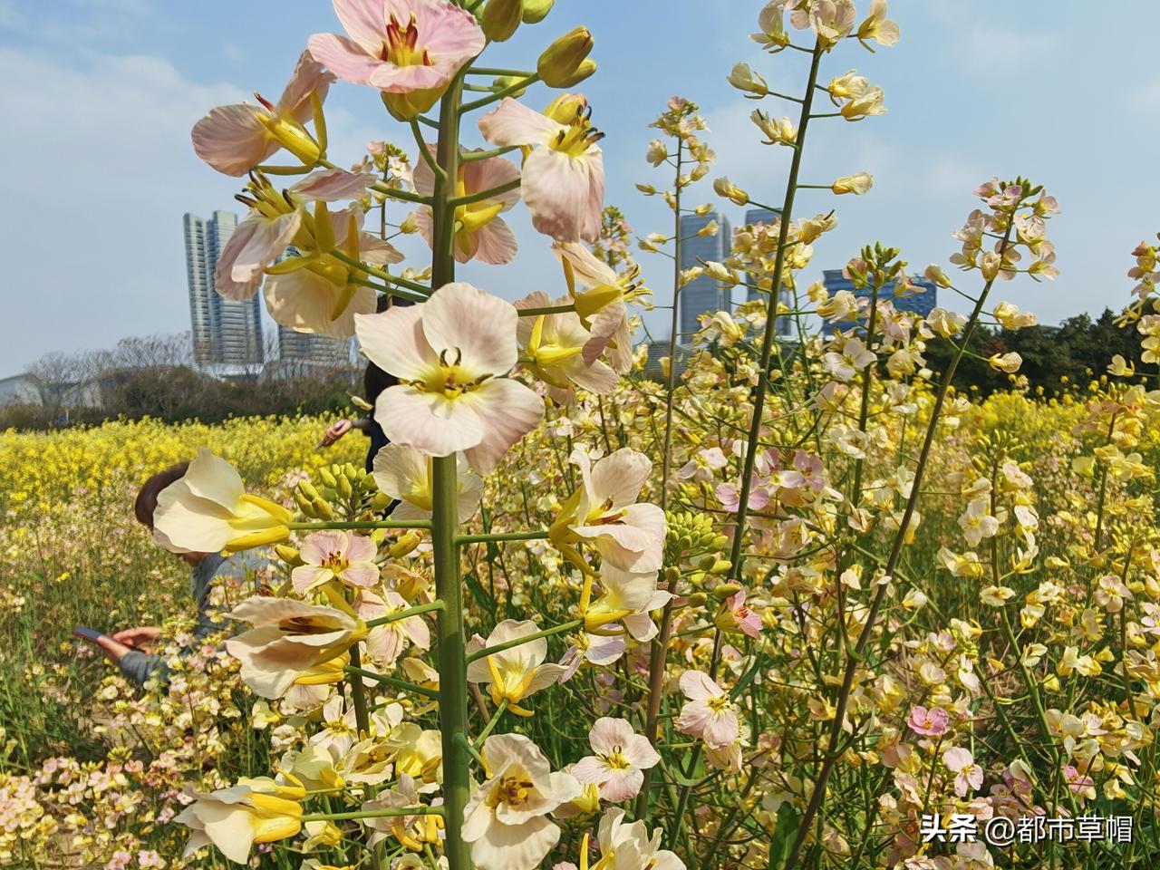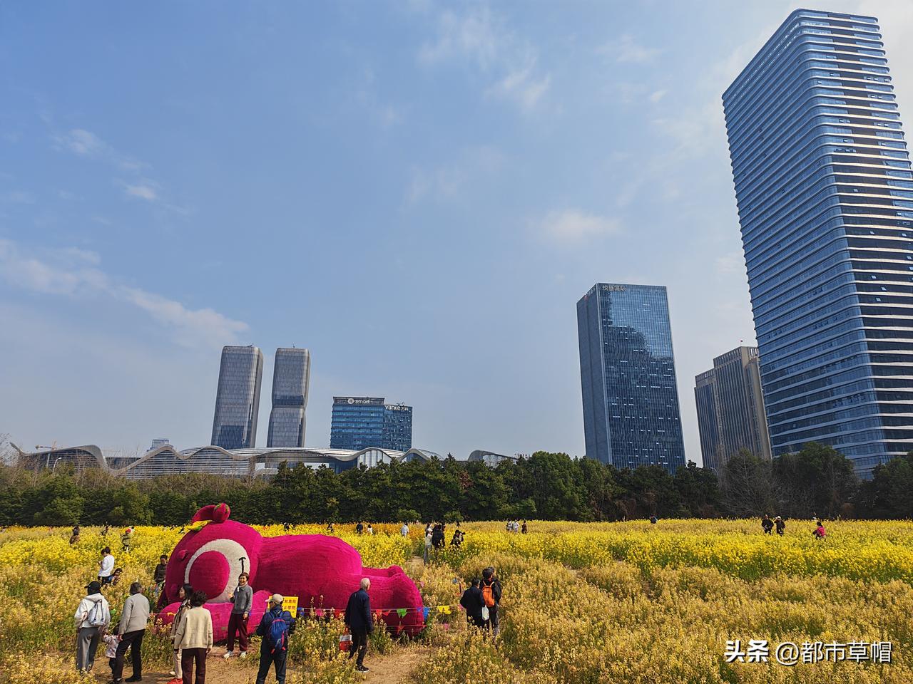 住在城里的人们,居然这么多人来这么一小片油菜地打卡,他们要是去了农村那大片的几十几百亩的油菜田里,站在长势比这好得多的齐人高的油菜花丛中,那该是怎样的激动啊! 那里,还有馥郁的油菜花香,还有勤劳的在花中采蜜的小蜜蜂。