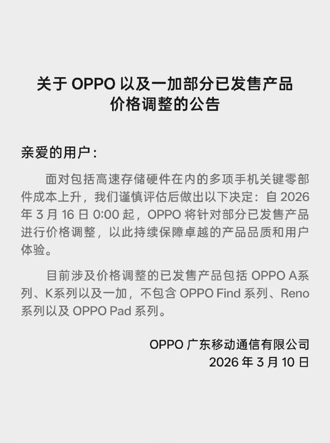 oppo涨价OPPO也受大环境影响开始涨价策略