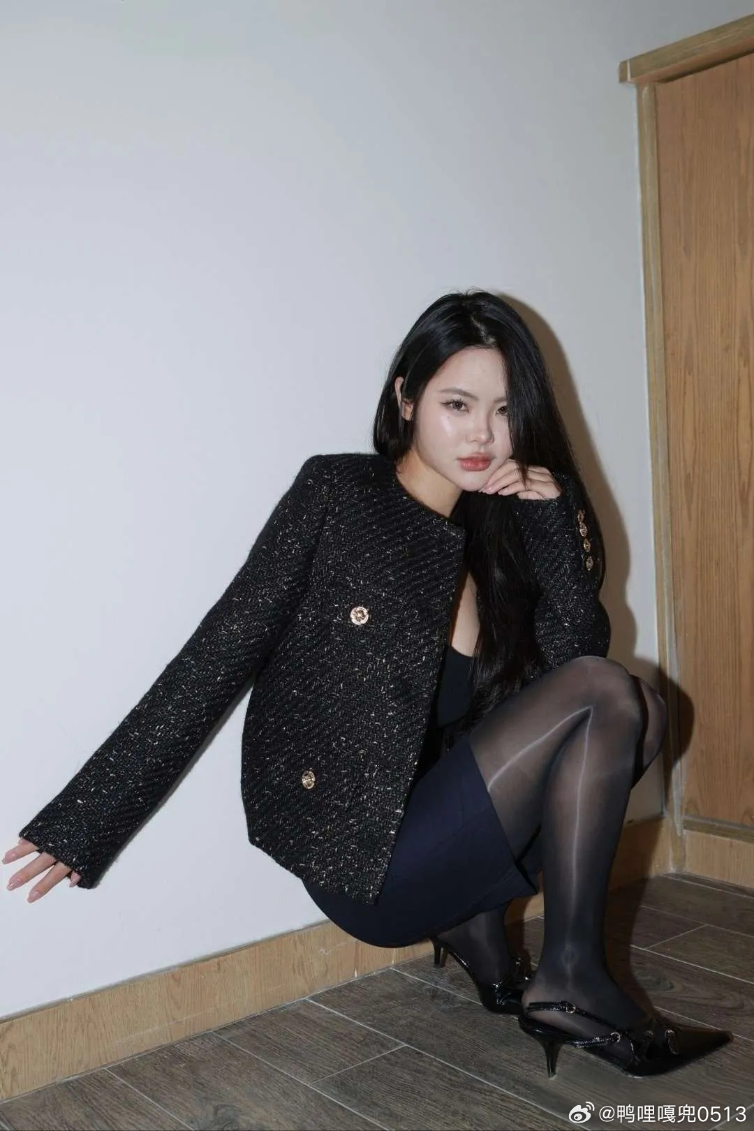 春季穿搭穿搭分享今日穿搭日常分享美女热门美女 棕色双排扣外套搭配紧身黑白格子裤子
