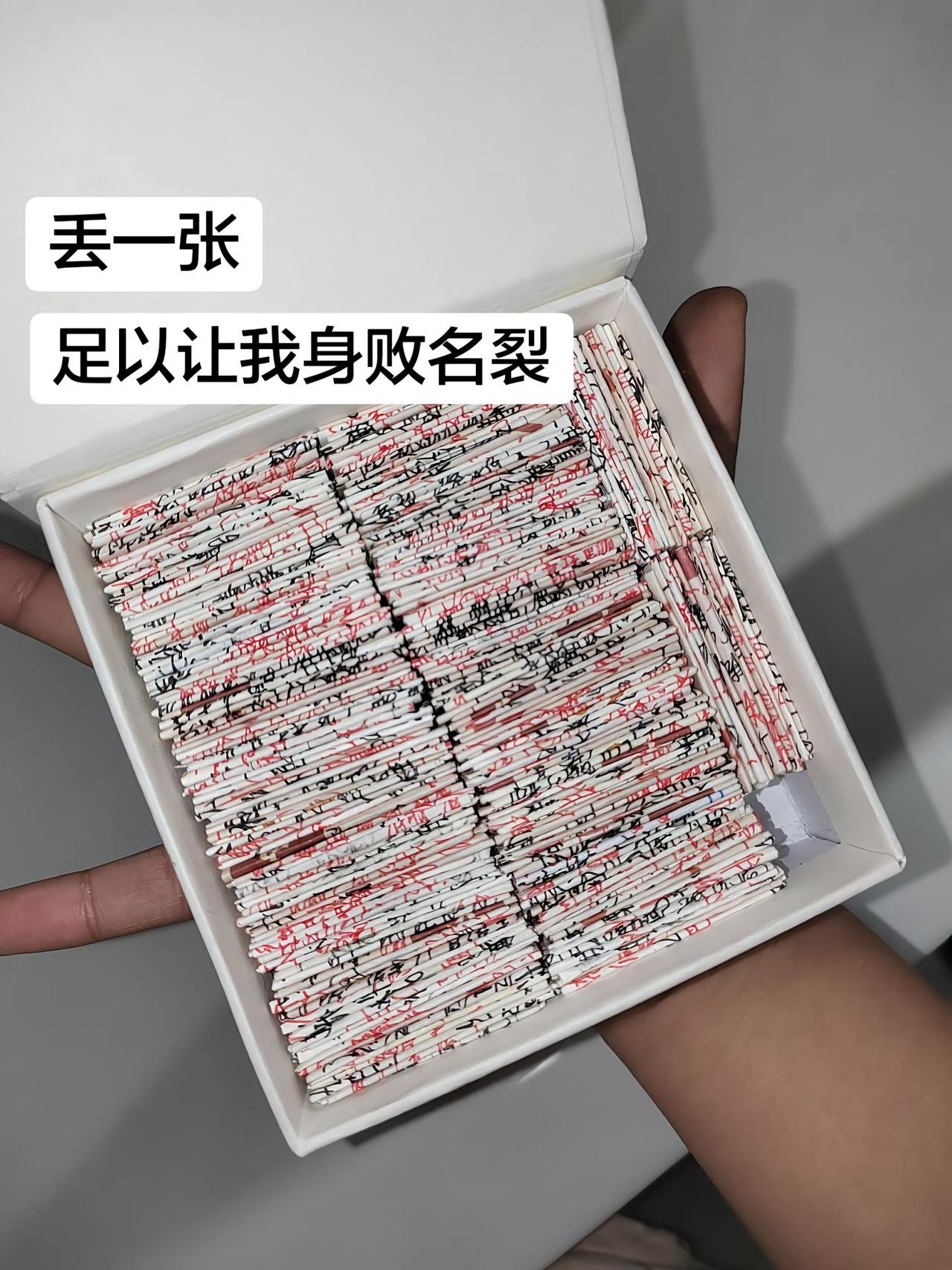 不懂就问! 这里面到底写了什么东西啊? 说丢一张就会身败名裂, 我真的啥也不懂, 看着这满满一盒写满字的纸条, 好奇心都要从屏幕里溢出来了🥺 有没有人能猜到里面到底写了啥?不懂就问 在线求助 好奇心爆棚 秘密小纸条
