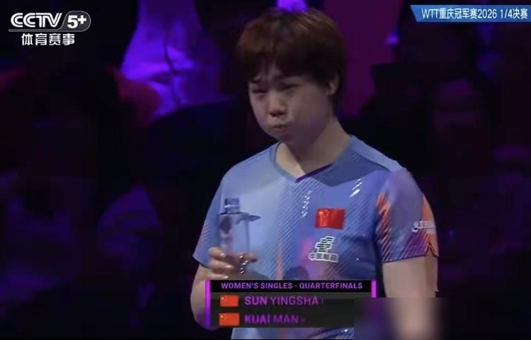 2026WTT重庆冠军赛女单,冷得离谱。 世界前四种子全栽了,头号种子孙颖莎也没例外。作为卫冕冠军,她想冲三连冠,结果1/4决赛2-4输给蒯曼,止步八强。 这是蒯曼第一次实打实赢孙颖莎,之前那胜绩还是孙颖莎伤退送的。蒯曼状态拉满,第三局16-14险胜拿住关键分,第六局直接11-2打懵对手。 孙颖莎首局11-6赢了,后面就疲态尽显,接发球全是漏洞,赛后蔫头耷脑独自收拾东西离场。 蒯曼之前还4-1赢了张本美和,半决赛碰王艺迪,年轻五岁体能占优,胜算不小。 男单同样爆冷,世界第一王楚钦2-4输给日本的松岛辉空。 国乒年轻辈冒头这么快,老主力怕不是真在留力世界杯?