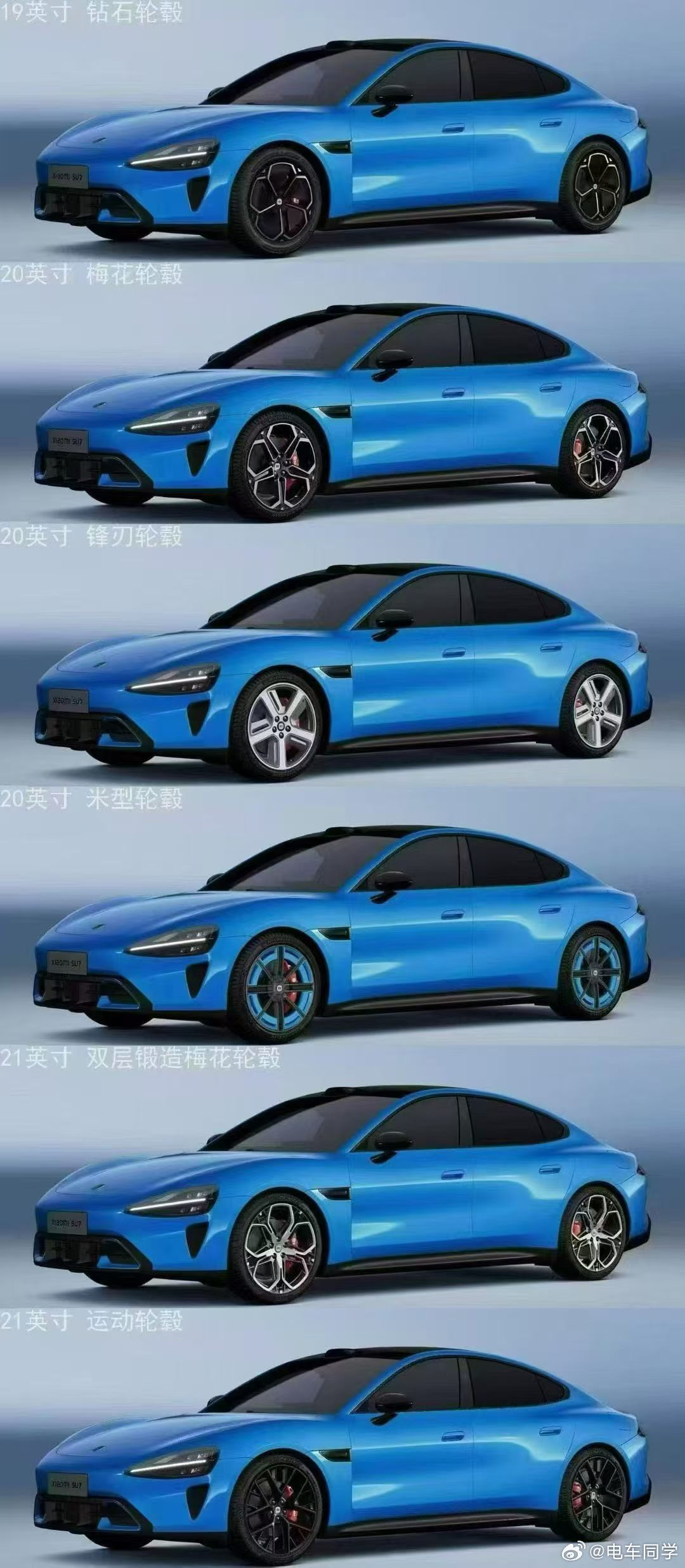 这个图好,新一代小米SU7,9色6轮毂搭配齐活了呀