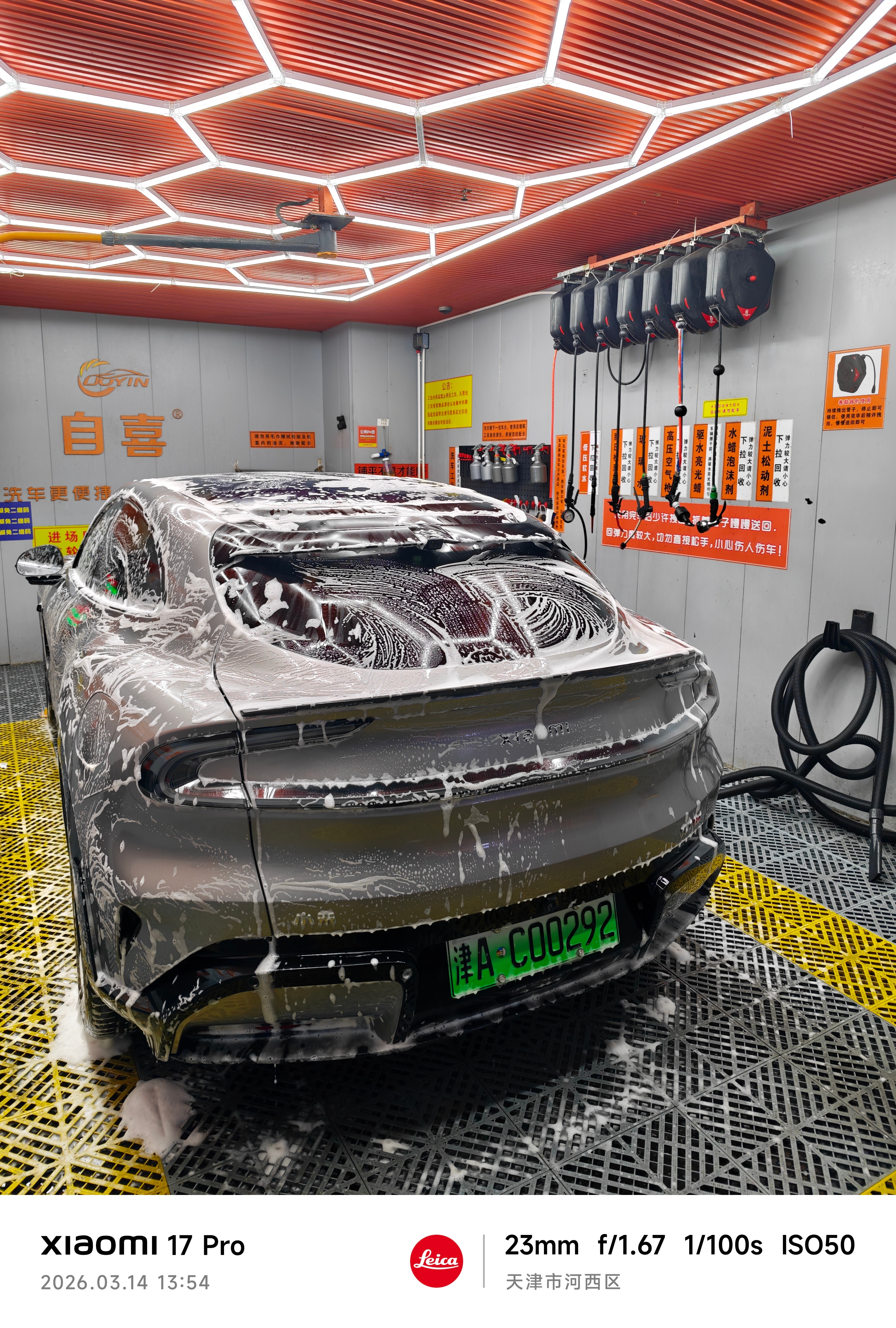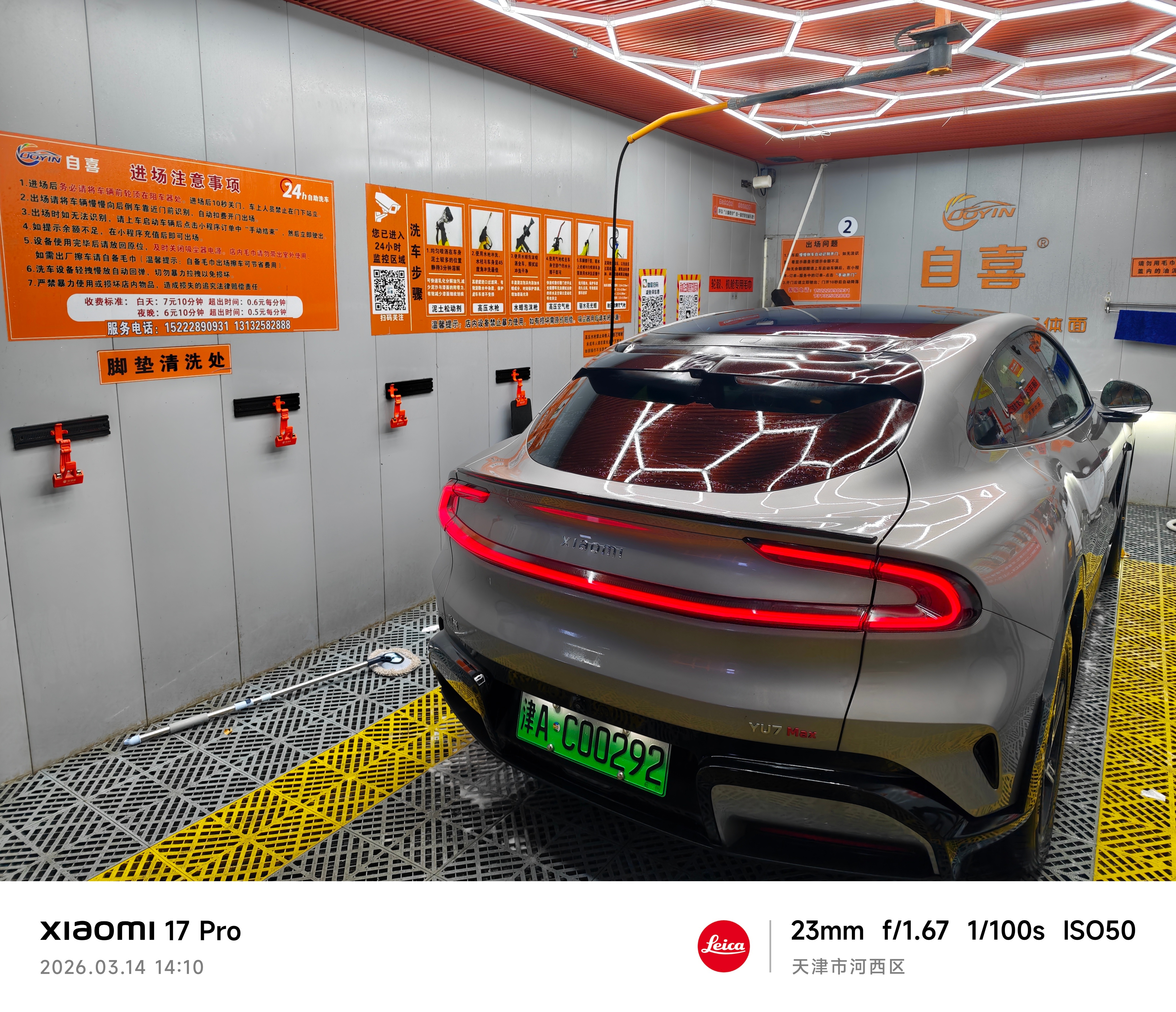 我的小米YU7快三个月没洗了,太脏了,昨天我自己去自助洗车了,洗了足足有40分钟,里里外外全洗了,洗完以后好看多了哈哈,就是发现有小伤,前面有点小磕印,可能是蹦个石头啥的造成的,问题不大。