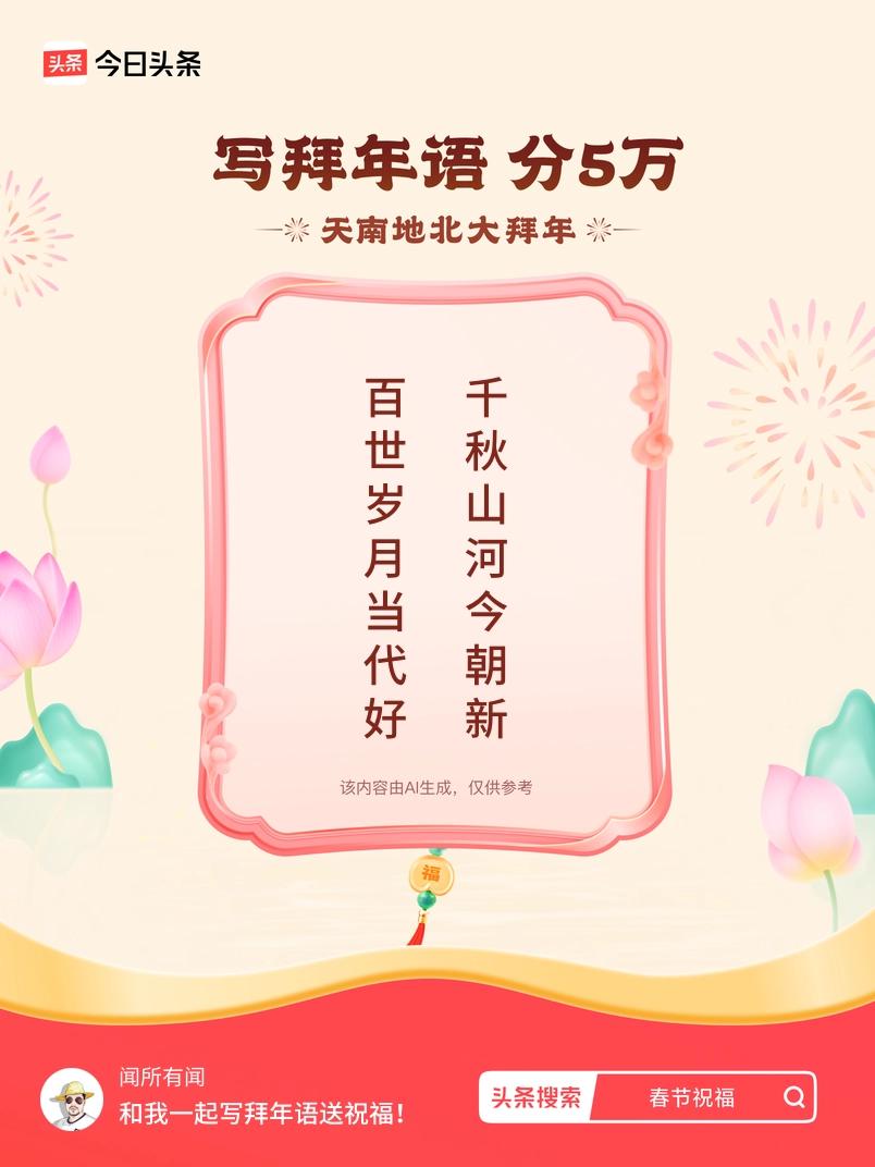 写拜年语送祝福新春拜年送祝福!我的祝福是:“百世岁月当代好,千秋山河今朝新”!快来一起写祝福吧戳这里,一起领红包>