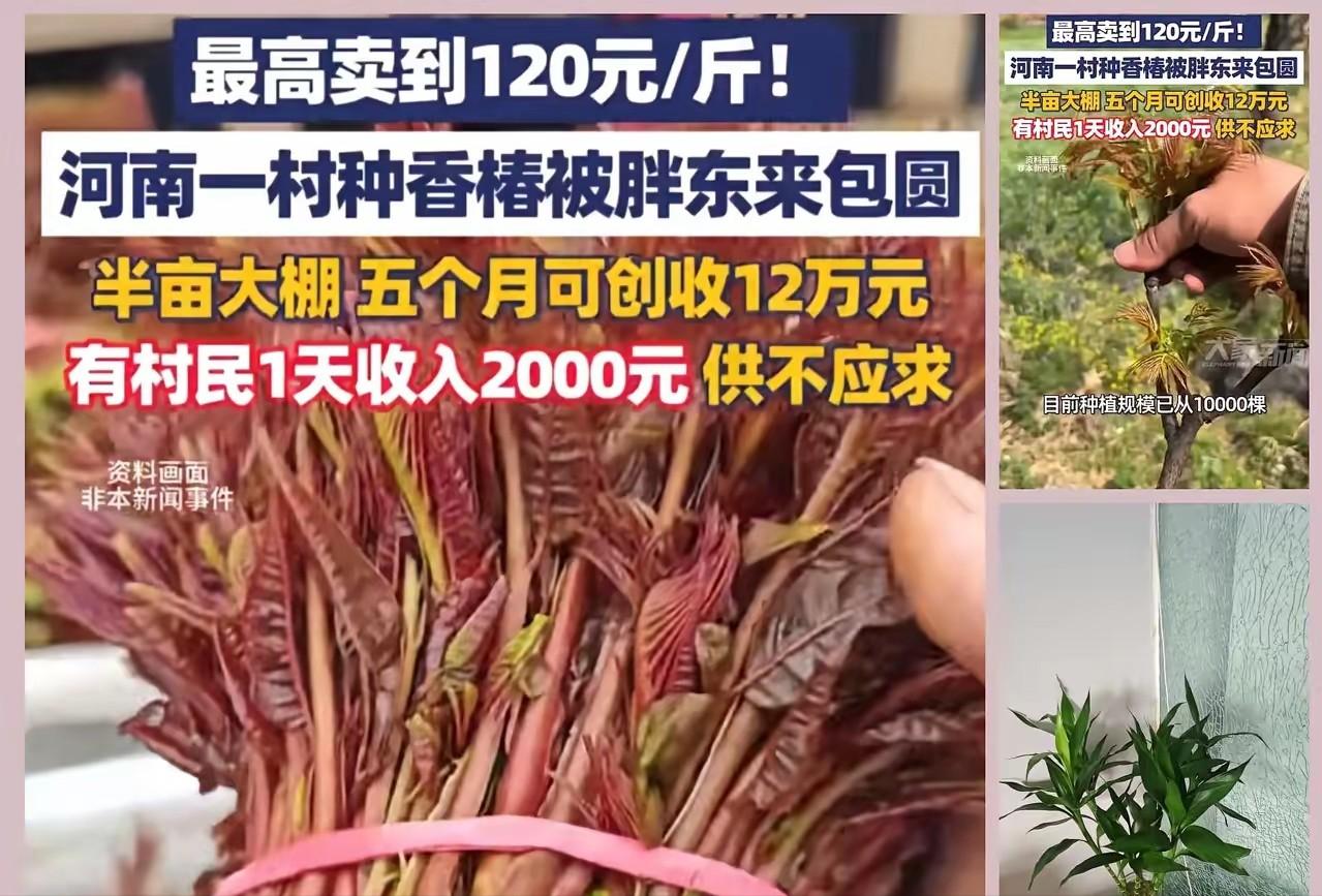 “这就是命!”河南一村干部听战友说1斤香椿在上海能卖七八十元。这位村干部当即相信,没有丝毫犹豫便自掏腰包,承包了十几亩土地,种下一万棵香椿树苗。 战友在酒桌上无意间提起,上海的香椿能卖到七八十元,王建军却把这话记在了心里。 这位45岁的退役军人,在河南周口清集镇担任村支书已有12年。他看着村里两百多户人家,年轻人大多外出谋生,留下的老人即便辛苦耕种一年,也很难攒下积蓄。那天晚上他失眠了,脑子里反复盘算:家乡这土质、这温差,不正适合种香椿? 2025年秋天,他把安置费和十年积蓄凑了12万,一个人签了合同,种下1万棵树苗。 没敢动员村民投一分钱。他知道农业就是赌命,亏了不能让乡亲们买单。冬天他住在地头,半夜起来给树苗盖被子怕冻着,春天守着看冒尖怕旱了。那几个月,他把种植书啃了个遍,大棚控温、水肥管理,一点点摸索。 等到采收那天,他傻眼了。 本地小贩最高只给15块一斤。战友口中的七八十元,其实是上海早春时节刚上市时的稀缺价格。等河南的香椿大面积下来,价格立马腰斩。更要命的是,没冷链没渠道,中间商层层扒皮,利润全被吞了。 官方数据摆在那儿:2026年产地批发价就稳定在15块上下。河南香椿种植面积超过20万亩,光周口就占了不少,供应量一大,议价权就没了。 王建军没认输。他给上海战友打电话,对接团购和生鲜店,教村民把最嫩的芽按两装进泡沫盒,冷链直发。绕过三层中间商,终端价直接拉到40多块。 他还在村里办起采摘文化节,把城里人引下乡,连着农家乐和香椿酱生意一起做。经过半个月的时间,一万棵树木最终带来了八万元的收益。 村里的老人不用出远门,摘香椿一天能挣一千多。手脚快的年轻人,日收入能到2000。大伙儿看到实打实的钱,纷纷要求加入。王建军牵头成立合作社,从苗木培育、技术指导到市场销售全程负责,种植规模从最初的1万株逐步发展到10万株。 去年同期,当地香椿最高卖到120块一斤。半亩地一季能赚12万,比种西红柿黄瓜翻了好几倍。 这事在网上传开,180万人点赞。但冷静想想,这成功有多少偶然性?退伍军人的执行力、12年村干部的组织能力、上海战友的精准人脉、2025年春天恰好的市场窗口期——这些变量凑在一起,才有了这个故事。 如果战友没说那句话,如果首次收购价是5块而不是15块,如果2026年香椿价格持续走低,这一切还会发生吗? 王建军自己说:"这就是命。"但他口中的命,不是发财的运气,而是带着村民趟出一条活路的责任。 农业从来不只是体力活,更是脑力活。得有人敢赌,还得有人会变通。 参考信息:河南一村头年种香椿就被胖东来包圆!有村民1天收入2000元,还供不应求 2026-03-13 15:28·中原网