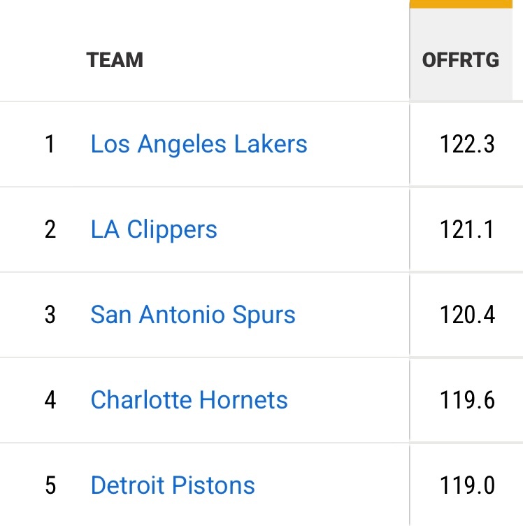 最近十场比赛,湖人战绩联盟第三进攻效率联盟第一,净效率联盟第三,场均得分联盟第二,投篮命中率联盟第一,三分命中率联盟第三,限制对手三分命中率联盟第三。