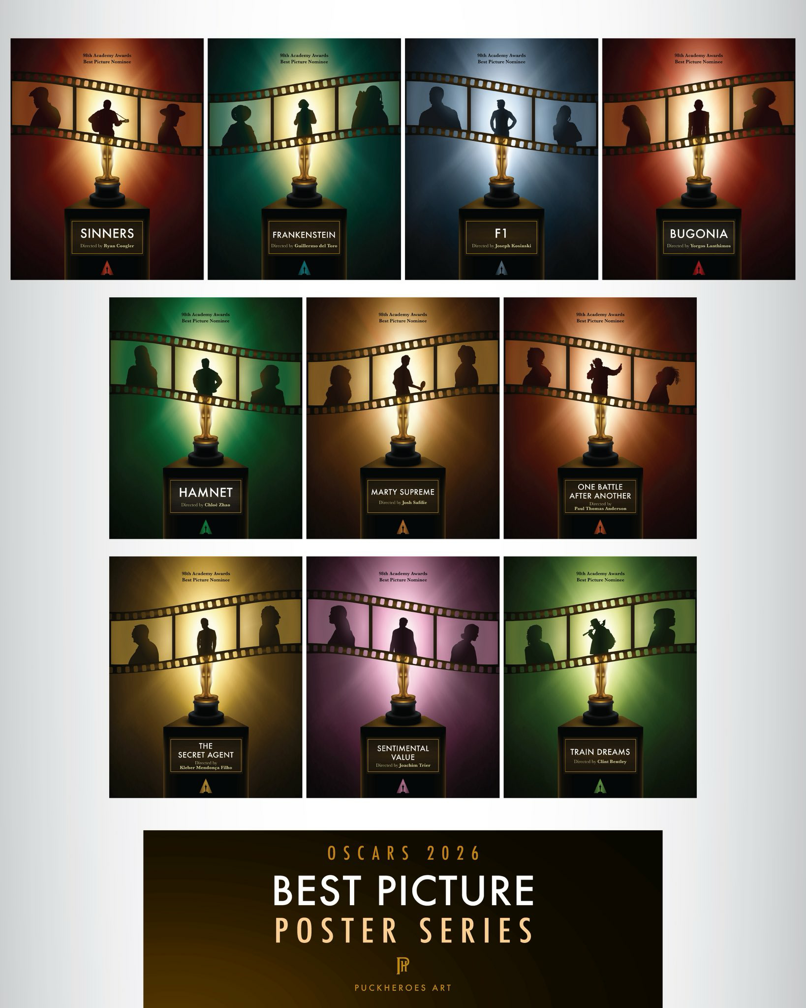 奥斯卡提名影片艺术海报第14弹!画师PuckHeroes为第98届奥斯卡最佳影片10部入围影片创作艺术海报大赏!谁会笑到最后?坐等明早7点开始!最佳影片提名:《暴蜂尼亚》《F1:狂飙飞车》《科学怪人》《哈姆奈特》《至尊马蒂》《一战再战》《密探》《情感价值》《罪人》《火车梦》