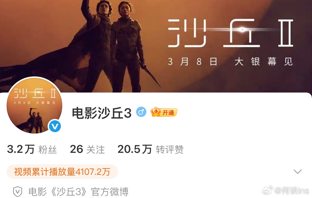 电影《沙丘2》官博变更为《沙丘3》,下周发布首支预告