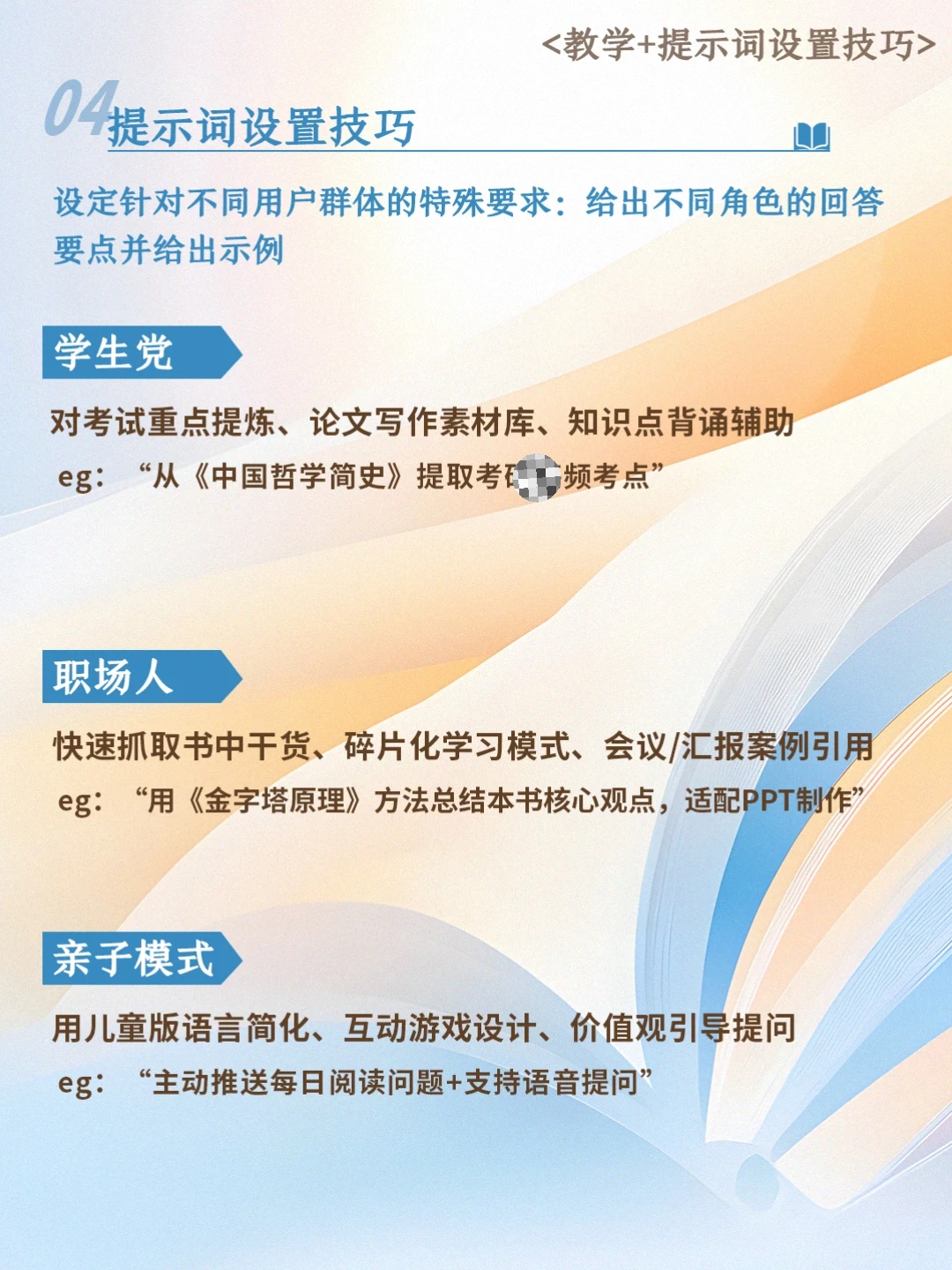 最近突发奇想,做了个用于读书学习,帮我提升的AI伙伴[哇R]指令词都放在图里了!